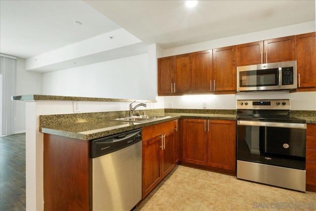 BEST ONE-BEDROOM FLOOR PLAN IN PARK TERRACE! There are so many reasons to love this unit. It features an incredibly spacious and flexible floor plan with oversized living room and bedroom. There is no wasted space, all 881 square feet are perfectly used. This home features a brand new Shower/Tub and fixtures along with brand new solar shades in both the living room and bedroom. The large balcony sits atop the courtyard and has a fantastic view of Petco Park. The deeded parking spot is RIGHT NEXT to the elevator, and a large storage unit is included (approx. 8x4). Well-secured building with onsite HOA. You don't have to lift a finger, it is move-in ready and waiting for it's new owner!