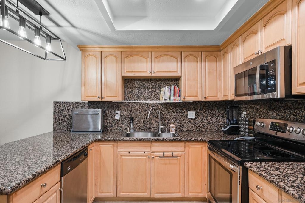 VA & FHA approved fully gated complex! Come check-out this beautiful ground-level condo with THREE parking spots! Yep - you get a 2 car tandem garage and a spot to park outside the garage. This unit has upgrades throughout - flooring, lighting, blinds...It is move-in ready. Granite tile can be found in the kitchen and full bathroom. Bedrooms are bright with sizable closet/storage space. There is a large, shared laundry facility on-site. Ideally located, minutes away from the 163, 8 and 805 freeways as well as North Island and Miramar bases. Fashion Valley is also right around the corner. We are also PET FRIENDLY!! Hurry over!