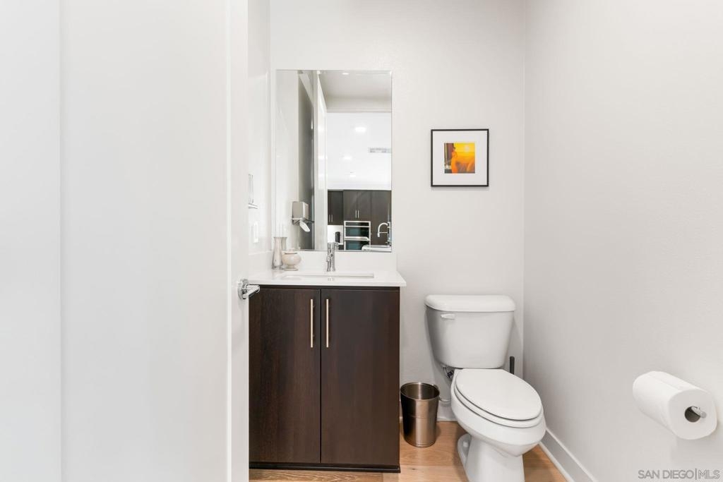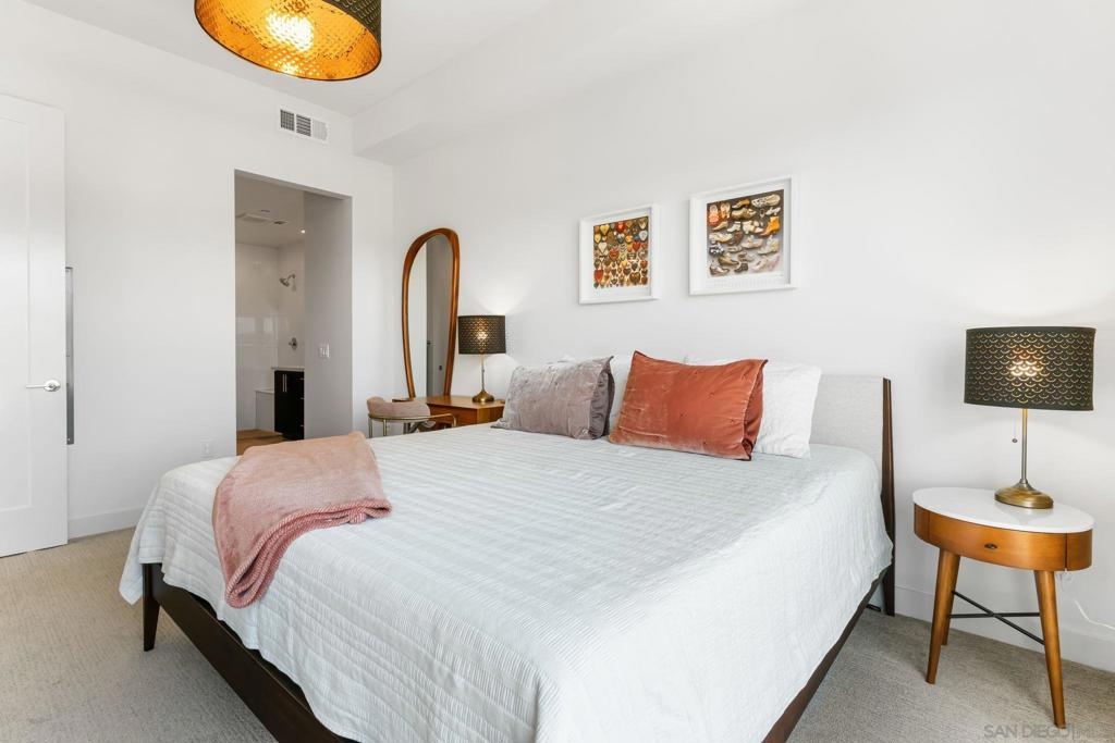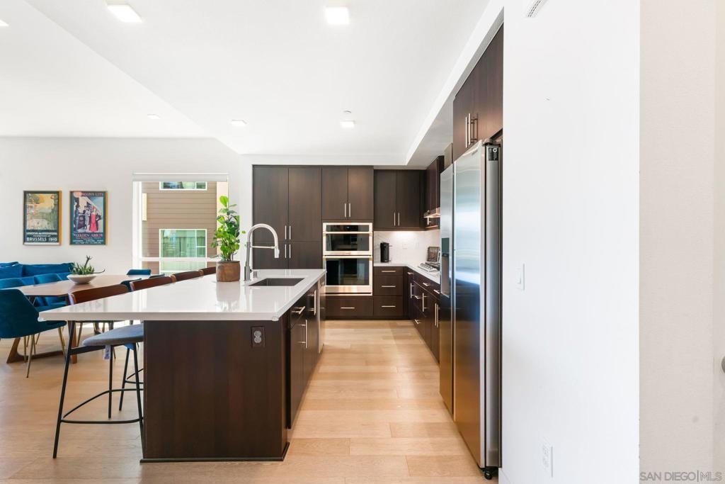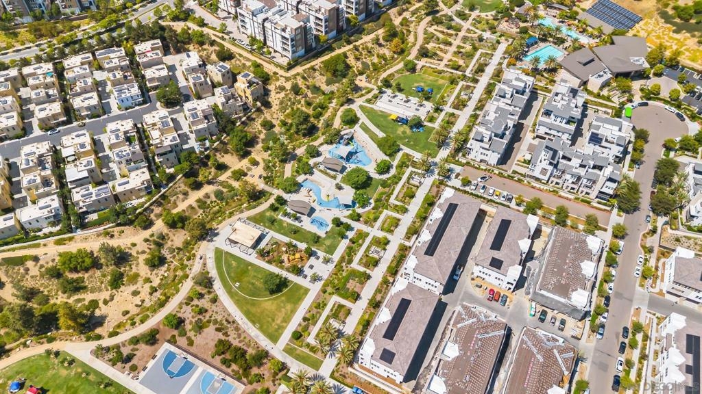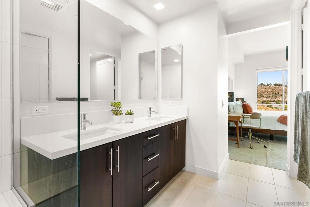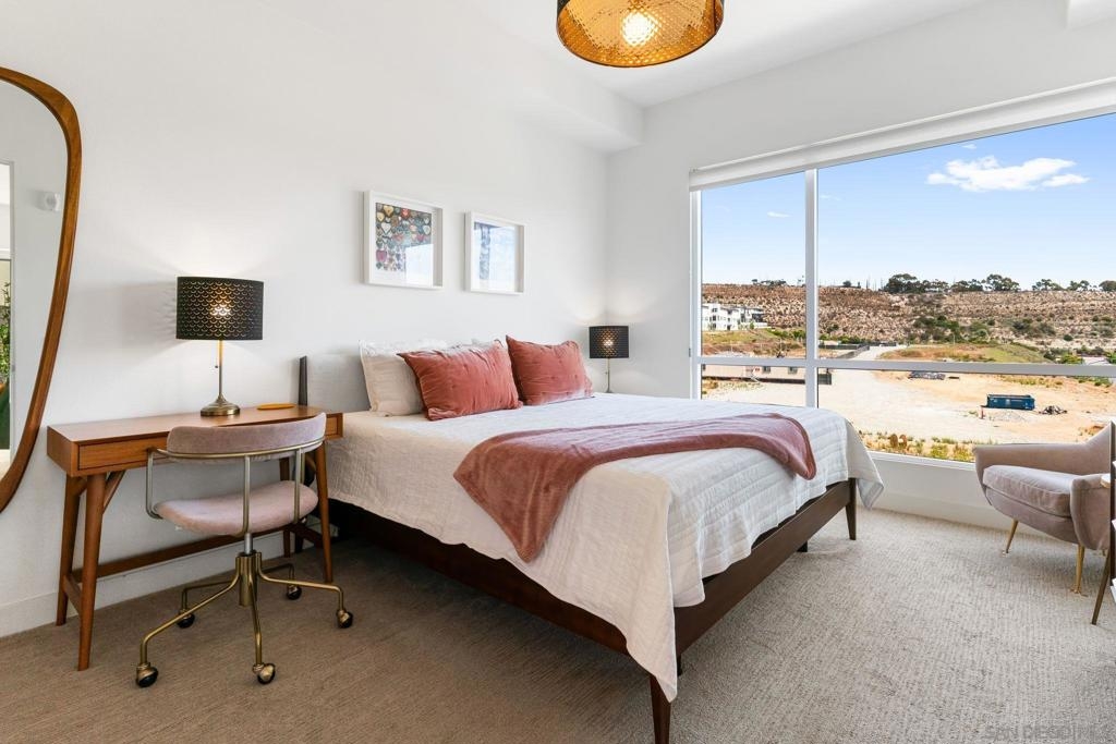 Welcome to this stylish modern 3 bed 2.5 bath home, where clean design meets comfort. The open-concept living area features 10' ceilings and natural light from oversized windows and sliding doors that frame scenic views, seamlessly extending the space onto a private balcony. The gourmet kitchen features sleek dark cabinetry, quartz countertops, a large island with bar seating, stainless steel appliances, and ample storage, making it ideal for both entertaining and everyday living. The master retreat includes expansive windows that capture hillside views, creating a bright and airy atmosphere. Located right next to Civita Park, near shopping, grocery stores, schools, and less than 15 minutes from the San Diego airport and downtown, Elevate is one of the most central locations you could live in the city. Units in this part of Civita rarely come on the market and this very special home is not to be missed. Thoughtful details such as wood floors, LED lighting throughout, separate laundry room with bonus storage and a private two-car garage complete the space. Live in luxury at Elevate at Civita! A master planned community located in Mission Valley with amenities such as sparkling community pools and spa, the Civita neighborhood park, urban gardens, amphitheater, basketball courts, dog park, jogging trails and more. A perfectly positioned neighborhood with endless opportunities to enjoy the best in San Diego living!