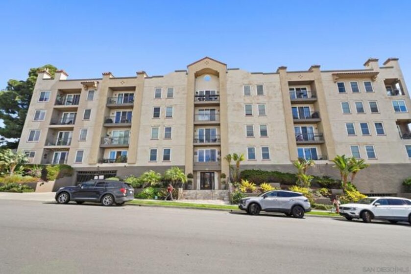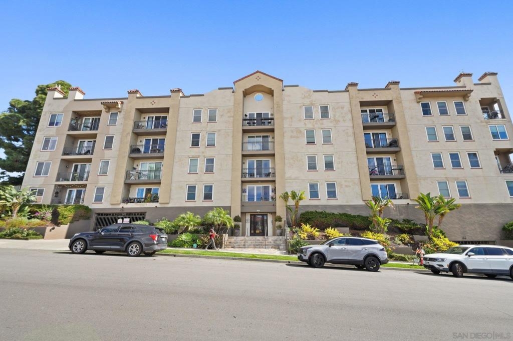 Large, centrally located 1-bedroom, ground-level home w/ TWO parking spots & in-unit washer/dryer! Designed with a breezy coastal feel, this appealing home at Villa Portofino in the heart of Bankers Hill includes high ceilings and thoughtful upgrades throughout. The open kitchen shines with granite counters, refinished cabinetry, tray ceiling, and a double oven with microwave, perfect for home chefs. Recessed, dimmable LED lighting, Hunter ceiling fans, crown molding, and a custom fireplace mantle add warmth and character, while double-pane windows and custom patio sliders with pool view enhance comfort and efficiency. This is a gated building. The spa-inspired bath features a jetted Jacuzzi tub and rain showerhead, plus a Washlet bidet toilet. The spacious bedroom offers a generous closet, and the in-unit, full-size washer and dryer provide maximum convenience. Modern touches such as custom shades and blinds, pull-down patio shade, and automatic laundry and closet lighting elevate everyday living. From your private patio, enjoy direct, no-step access to the pool, spa, BBQ area, and outdoor lounge. This upscale community is gated throughout and includes a well-equipped gym facility. Two deeded parking spaces—a rare perk for a one-bedroom—add exceptional value. Walk to Balboa Park and Little Italy’s exceptional dining, and reach downtown, Hillcrest, and the airport in minutes. This is effortless urban living with resort-style perks right outside your door. Your next chapter starts here! Furniture can convey.