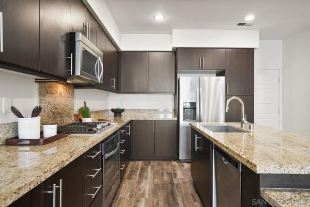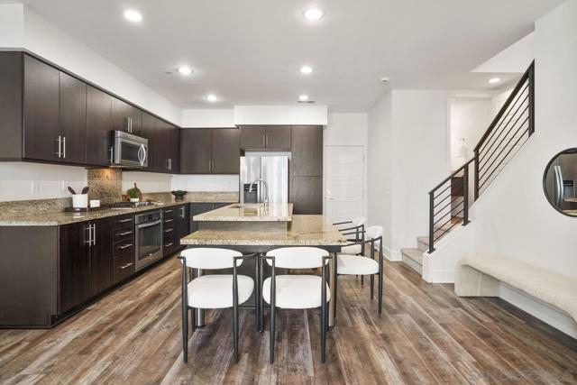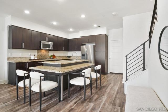 ******Best deal in Civita****** Welcome to Civita-Mission Valley's Crown Jewel! Step into this beautifully upgraded two-story townhome located in the highly sought after Frame & Focus community within Civita. This turnkey residence offers 3 spacious bedrooms, 2.5 bathrooms, and a host of designer upgrades throughout. The gourmet kitchen boasts granite countertops, a generous center island, and stainless-steel appliances-perfect for entertaining or everyday living. Enjoy the warmth of and durability of luxury vinyl plank flooring on the main level and upstairs hallway, complemented by brand-new carpet in the bedrooms, stairs and fresh interior paint throughout. The primary suite features a large walk-in closet, dual vanities, and plenty of natural light. Upstairs you'll find a full-size stackable washer and dryer conveniently located in a dedicated laundry room. The two secondary bedrooms share a well-appointed guest bathroom with a tub/shower combo. Additional features include recessed lighting, a two-car garage, and guest parking at the rear of the complex. Living in Civita means access to world-class amenities including multiple pools, a state-of-the-art fitness center, dog park, playgrounds, walking trails and vibrant community gathering spaces. With upscale shopping, dining, and easy freeway access just moments away, this home truly combines style, comfort, and convenience. Don't miss your chance to live in one of San Diego's most dynamic urban communities!
