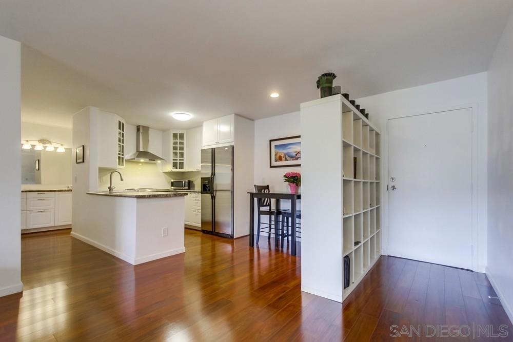 PRICED TO SELL! SELLER MOTIVATED, SUBMIT ALL OFFERS. Discover an exceptional opportunity to own in the coveted Pacific Beach community, where coastal charm meets modern comfort. This beautifully updated, light-filled condo offers an airy open floor plan adorned with sleek wood-laminate flooring and a refined neutral palette. The gourmet-style kitchen is a true highlight, boasting stainless steel appliances, a contemporary vent hood, and abundant cabinetry for effortless storage. A rare oversized balcony extends your living space, providing the perfect setting for morning coffee, alfresco dining, or simply unwinding in the coastal breeze. The generously sized bathroom showcases a tiled shower, ample built-in storage, and a separate bonus storage area for added convenience. Set within a meticulously maintained complex, residents enjoy a sparkling community pool, secure underground parking, and the tranquility of a private cul-de-sac that backs to a peaceful canyon. Perfectly situated for both convenience and lifestyle, this home offers quick access to premier shopping, vibrant dining, major freeways and the pristine coastal sands of Pacific Beach—just minutes away. Combining a prime location with thoughtful upgrades, this is a rare opportunity to embrace the best of San Diego’s coastal living.