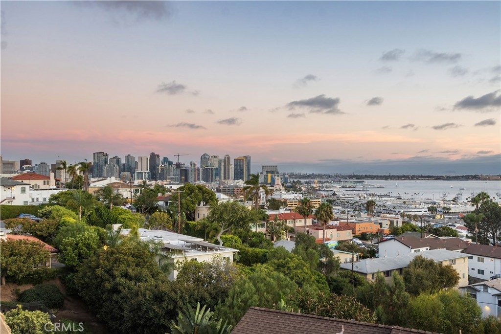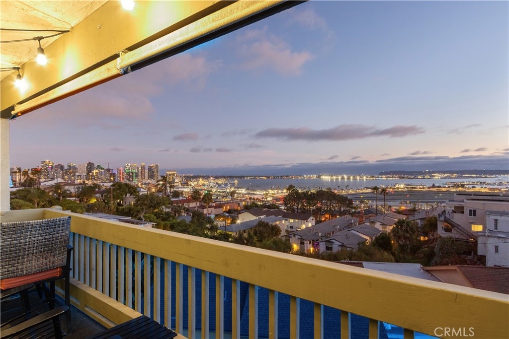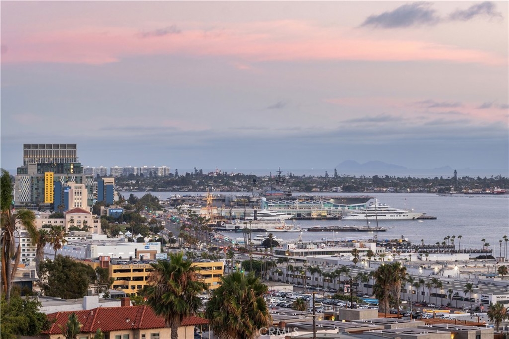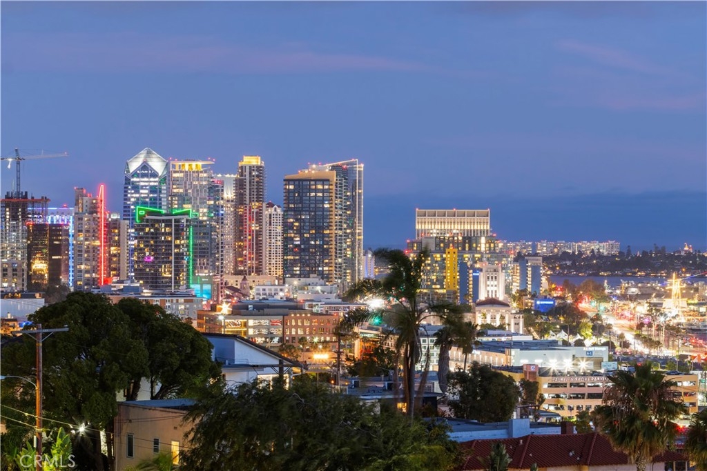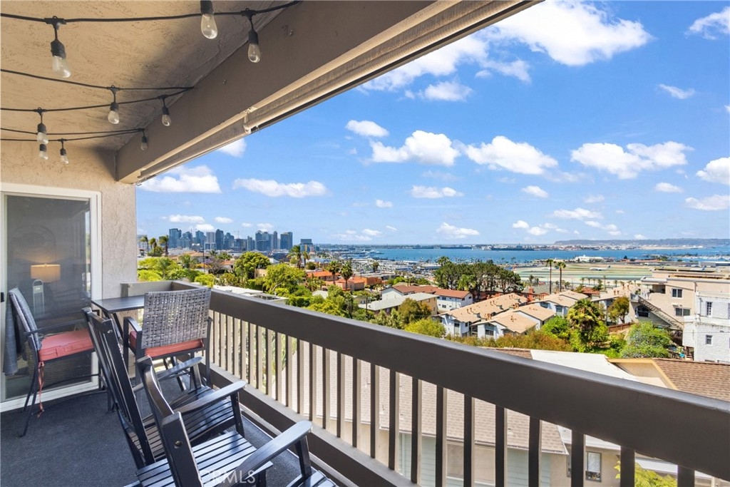 VIEWS! Penthouse Living with Panoramic Views! Beautifully renovated top-floor condominium in sought-after Middletown, featuring mid-century modern design touches throughout. Enjoy Bay, Ocean, City Lights, fireworks, Banker's Hill, and canyon views from the living area, kitchen, private balcony, and primary suite. Highlights include an open floor plan, dual primary bedrooms, updated kitchen and baths with granite counters, stainless steel appliances, in-unit laundry, and elevator-accessed garage parking with storage. The exterior of the community was recently painted and upgraded. Proximity to Balboa Park, San Diego Zoo, Downtown, Gaslamp, Little Italy, Old Town, public transportation, freeways, restaurants & nightlife. HOA includes water, trash, sewer, and building maintenance.