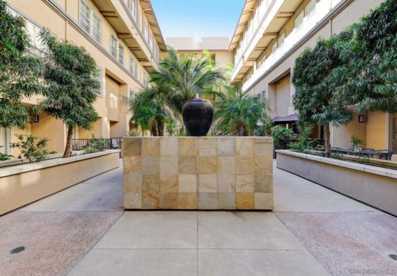 Experience the Best of Indoor-Outdoor Living in the Heart of the Marina District! This impeccably maintained 2-bedroom, 2.5-bathroom townhome at City Walk offers the perfect blend of style, privacy, and convenience. Captivating with its Mediterranean-inspired architecture and two expansive private patios, this rare residence is one of only 12 unique internal townhome-style units in the community. The main level features an open-concept living and dining area that flows seamlessly to both patios, perfect for embracing San Diego’s indoor-outdoor lifestyle. Enjoy solid wood and porcelain tile flooring, in-unit laundry, and generous under-stair storage. The kitchen includes a gas cooktop and an oversized dining bar that opens to the living area, with access to an enclosed private terrace. Upstairs, both bedrooms are thoughtfully designed for comfort and both feature en-suite bathrooms. The spacious primary suite includes a walk-in closet with custom built-ins from The Container Store. This home is set within the beautifully landscaped City Walk, a community offering tranquil courtyards with fountains and waterfalls, fire pits, lounge areas, a fitness center, and reservable spaces with kitchens for private gatherings and all with low HOA dues. Located just steps from Pantoja Park, Seaport Village, Little Italy, Gaslamp Quarter, The SHELL, Petco Park, and trolley stations, this home offers walkable access to everything Downtown San Diego has to offer-while still providing a peaceful, residential atmosphere.