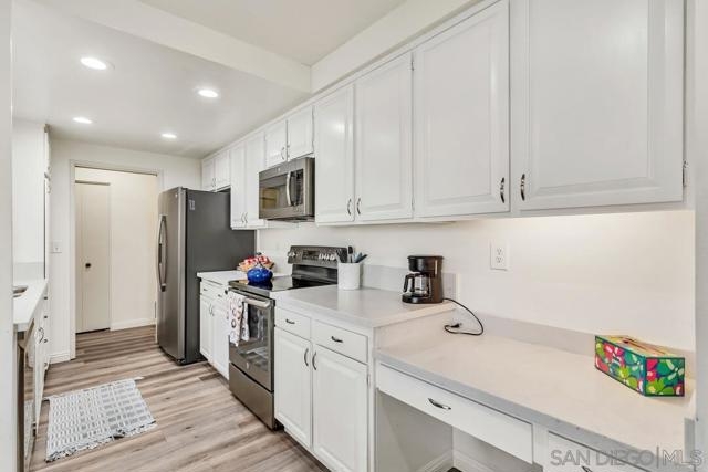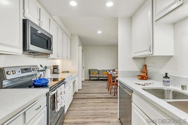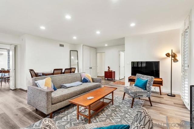 Beautifully Upgraded Single-Story Townhome in Point Loma/Ocean Beach. Welcome to this rare single-level 2 bedroom, 2 bathroom end-unit townhome with its own private courtyard entrance and attached 2-car garage. Perfectly situated in the sought-after Point Loma/Ocean Beach neighborhood, this home offers both comfort and convenience just minutes from the sand, shopping, dining, and freeways. Step inside to find a light-filled, open layout featuring brand-new luxury vinyl plank flooring, fresh paint, recessed lighting, and tastefully upgraded bathrooms. The kitchen boasts refinished cabinets, quartz countertops, and stainless steel appliances. The spacious primary suite includes direct access to the private patio, a built-in vanity and dressing area, plus a newly tiled shower in the ensuite bathroom. Enjoy resort-style living with community amenities including a gated entrance, heated pool, outdoor kitchen, and lending library. All of this in an unbeatable location—just minutes from Ocean Beach, Sunset Cliffs, Mission Bay, Robb Field, Barnes Tennis Center, Dusty Rhodes Park, Dog Beach, and more. This home truly has it all: prime location, modern upgrades, and desirable community features. Don’t miss your chance to make it yours!