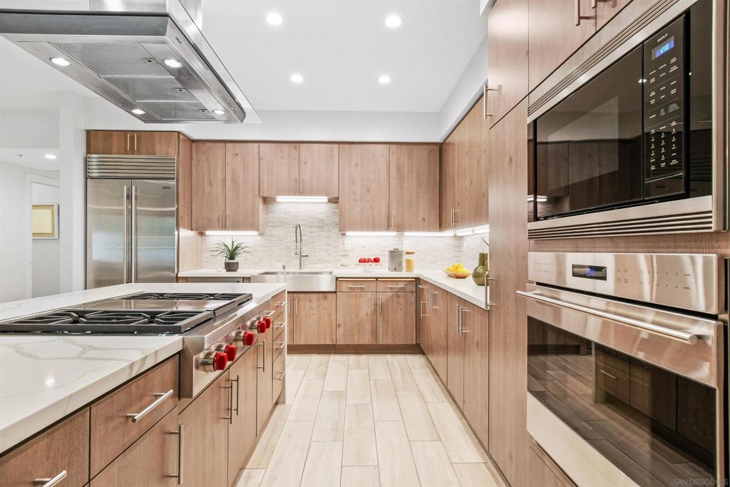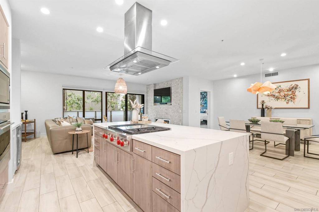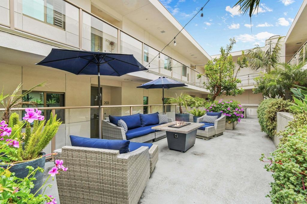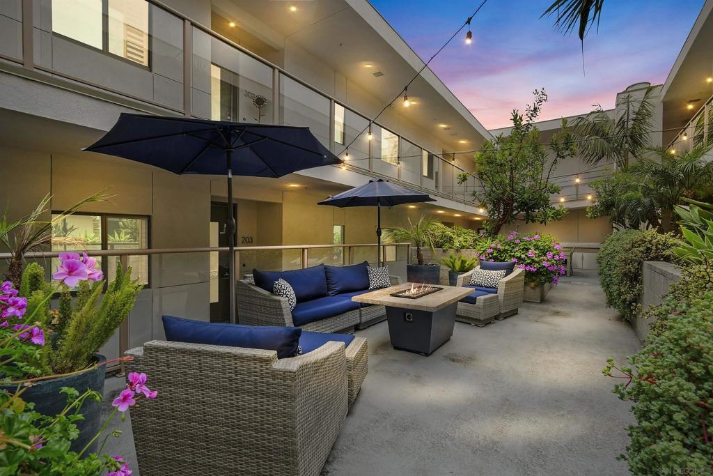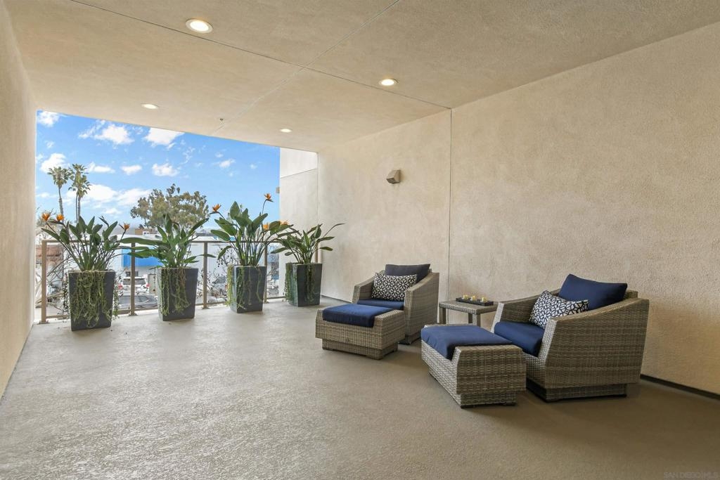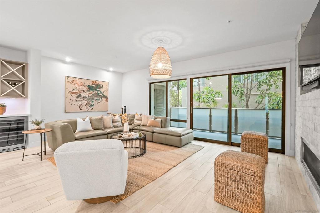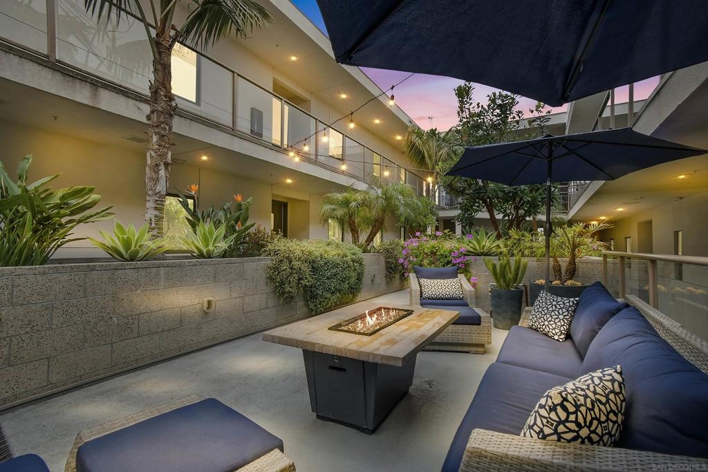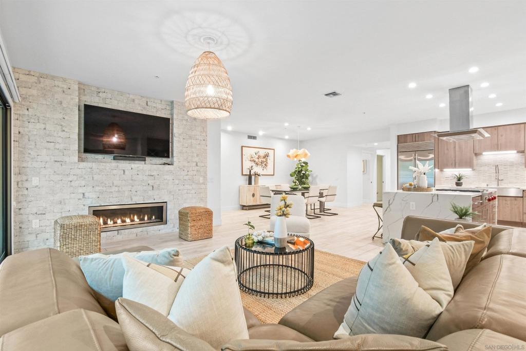 At the doorstep to Shelter Island and the Point Loma Village, this home is much more than its luxuriously appointed 3BR, 2.5BA, 2,100+ sq. ft. - here, it is all about the lifestyle! Fresh local seafood, 4th of July at Kellogg Beach, a pre-concert toast before heading over to Humphrey's, or even just enjoying a quiet respite at home in front of the simple but elegant fireplace. Built in 2017 with generously proportioned room sizes, primary and secondary bedroom suites plus an office/den, an entertainer's kitchen open to the main living/dining areas, sliding doors to the private patio, and 9' ceilings, all make for grand living whether this is your primary residence or your second home away from home. SubZero refrigerator, Wolf range | wall oven | microwave, wine refrigerator, and quartz waterfall countertop island. Thoughtfully designed full-sized laundry room has built-in cabinetry, clothes-folding countertop space & metal wall-mounted drying racks | hanging rod. Multiple closets in the 2 bedroom suites, including a walk-in in the primary, entry & patio closets and a storage cage room with separate bike/surfboard racks available for residents, provide plenty of storage options. The 2nd floor courtyard right outside your front door is beautifully landscaped with raised planters, cafe lights, outdoor seating & a large BBQ grill. 2 side by side parking spaces in the gated parking garage, internet & central heat/AC in the unit. Whether you desire the lock & go lifestyle for an evening out, or a months-long diversion abroad, a very comfortable and well-appointed home awaits you.