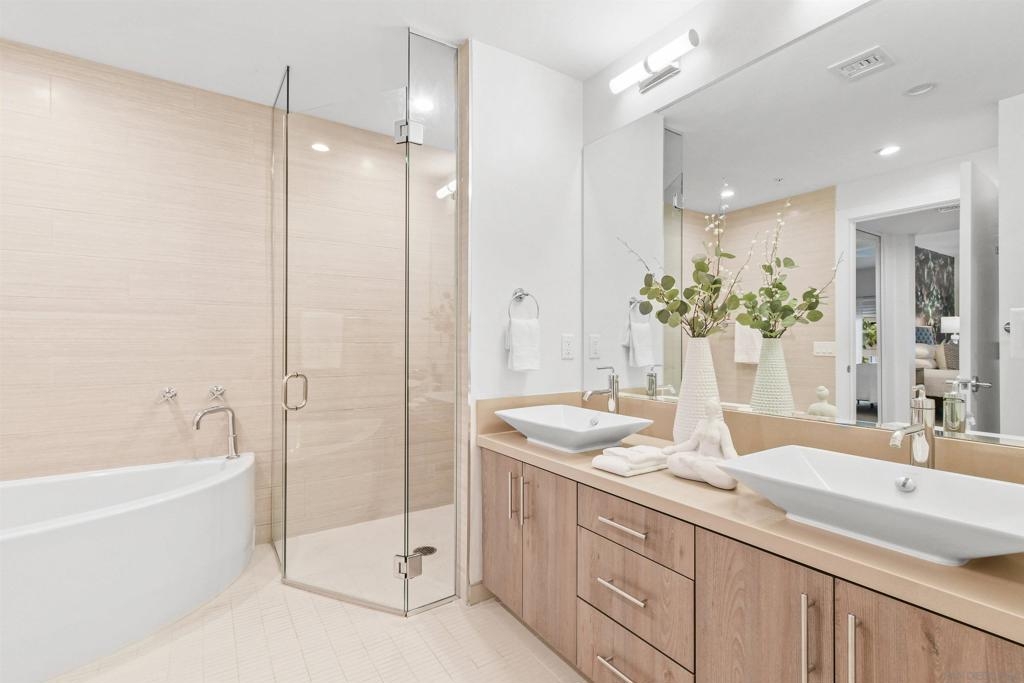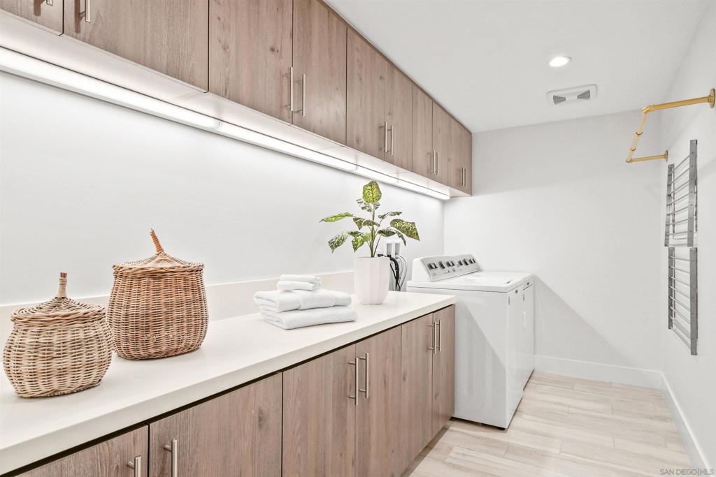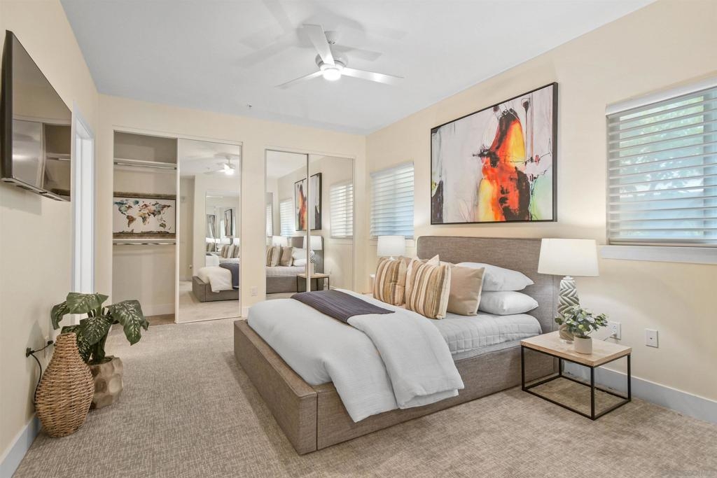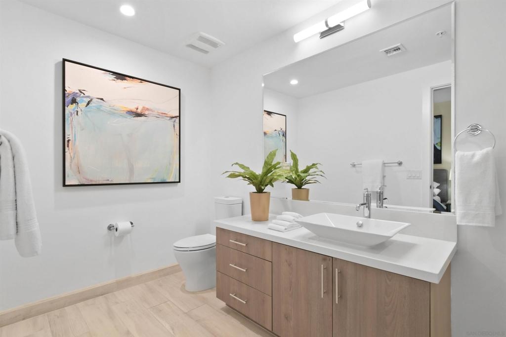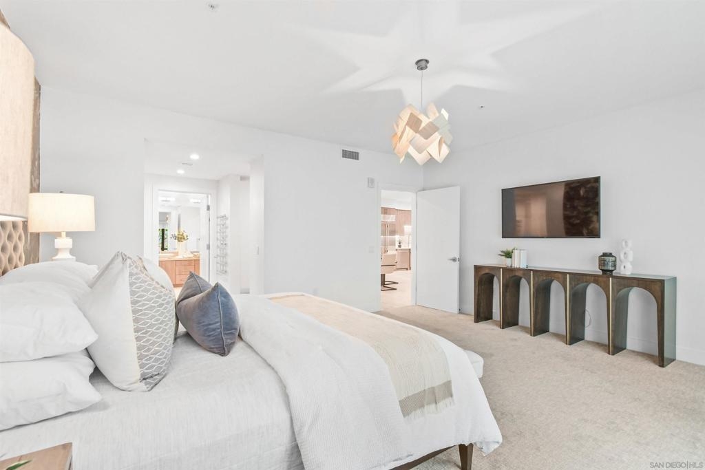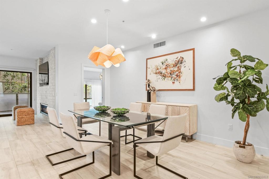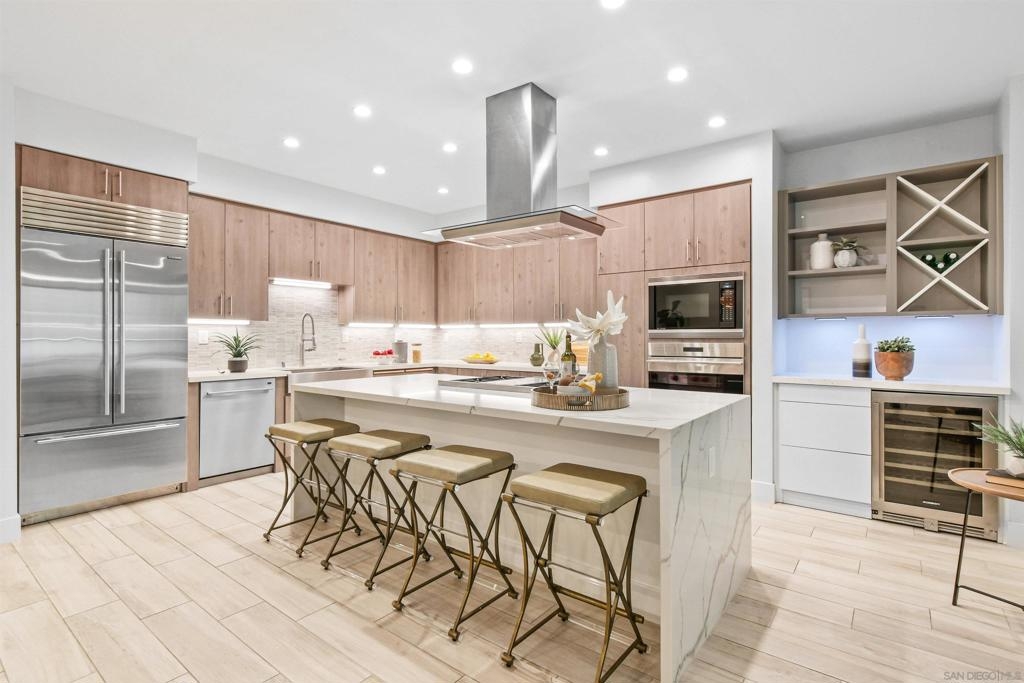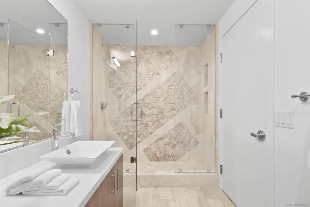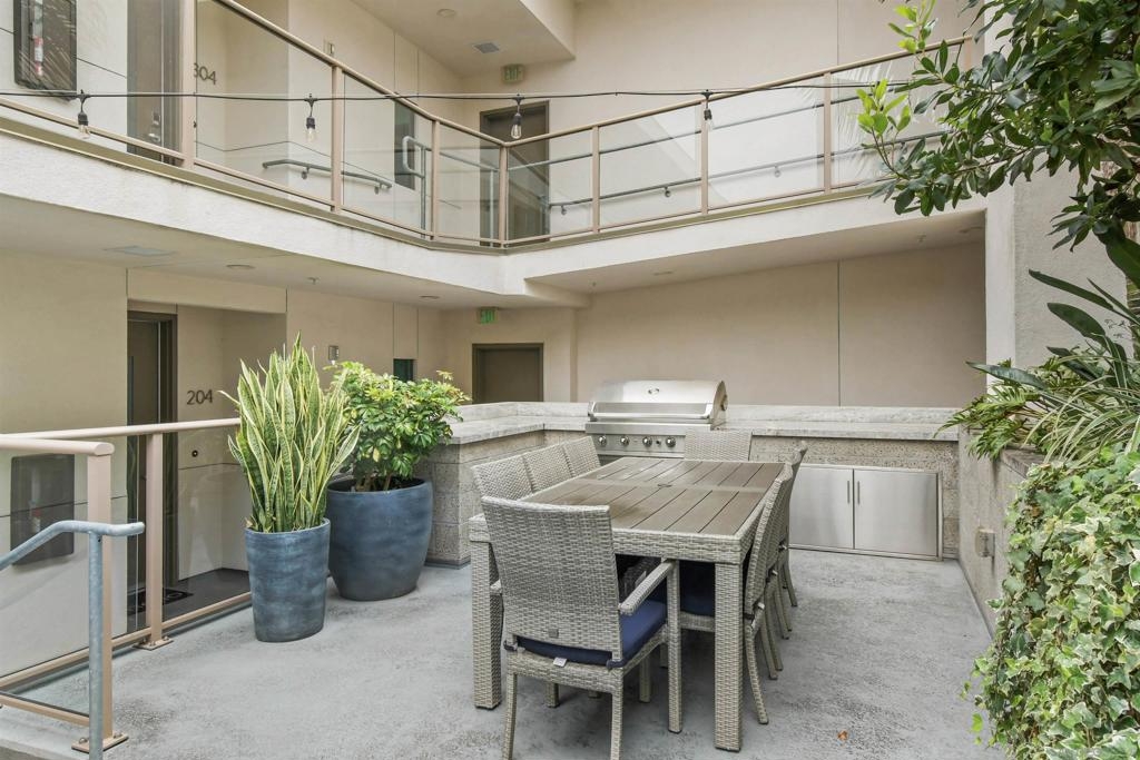 At the doorstep to Shelter Island and the Point Loma Village, this home is much more than its luxuriously appointed 3BR, 2.5BA, 2,100+ sq. ft. - here, it is all about the lifestyle! Fresh local seafood, 4th of July at Kellogg Beach, a pre-concert toast before heading over to Humphrey's, or even just enjoying a quiet respite at home in front of the simple but elegant fireplace. Built in 2017 with generously proportioned room sizes, primary and secondary bedroom suites plus an office/den, an entertainer's kitchen open to the main living/dining areas, sliding doors to the private patio, and 9' ceilings, all make for grand living whether this is your primary residence or your second home away from home. SubZero refrigerator, Wolf range | wall oven | microwave, wine refrigerator, and quartz waterfall countertop island. Thoughtfully designed full-sized laundry room has built-in cabinetry, clothes-folding countertop space & metal wall-mounted drying racks | hanging rod. Multiple closets in the 2 bedroom suites, including a walk-in in the primary, entry & patio closets and a storage cage room with separate bike/surfboard racks available for residents, provide plenty of storage options. The 2nd floor courtyard right outside your front door is beautifully landscaped with raised planters, cafe lights, outdoor seating & a large BBQ grill. 2 side by side parking spaces in the gated parking garage, internet & central heat/AC in the unit. Whether you desire the lock & go lifestyle for an evening out, or a months-long diversion abroad, a very comfortable and well-appointed home awaits you.