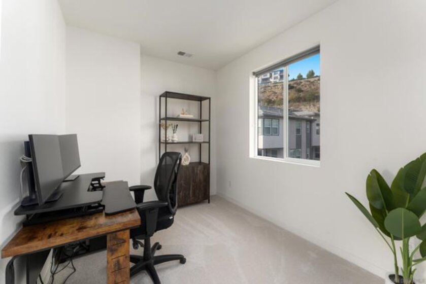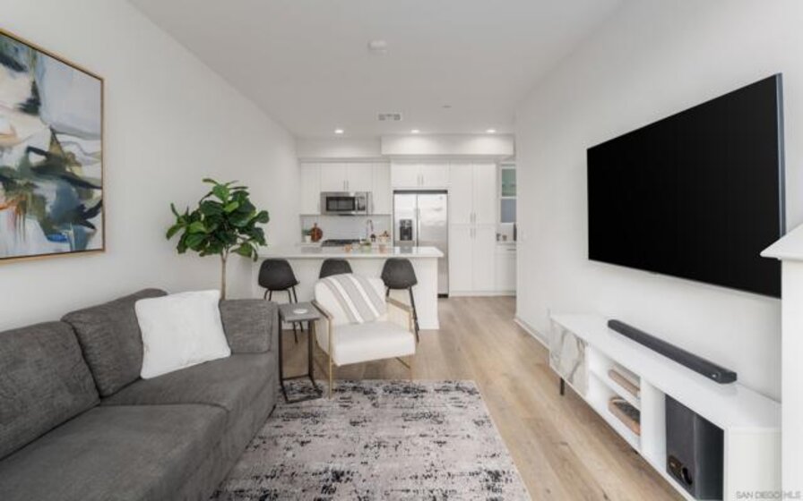 Sunset west-facing views! 2022 build. Very rare to have views at this price point — truly the best deal in Civita! Welcome to 3045 Marquee Way, located in the highly desirable Marquee at Civita community in the heart of Mission Valley. This modern 2022-built home features one bedroom plus a spacious loft and showcases premium upgradesthroughout, including enhanced flooring, designer lighting, sleek countertops, high-end appliances, a large closet, and generous storage space. Enjoy the convenience of an oversized one-car garage and the exceptional lifestyle that Civita is known for. Residents have exclusive access to resort-style amenities such as a state-of-the-art recreation center, two sparkling pools, a two-story fitness center, scenic walking and hiking trails, and a beautifully designed 16-acre park. Nearby parks, shopping, dining, and additional trails make this location as practical as it is desirable. Don’t miss this rare opportunity to own a view home at an unbeatable value in Civita!