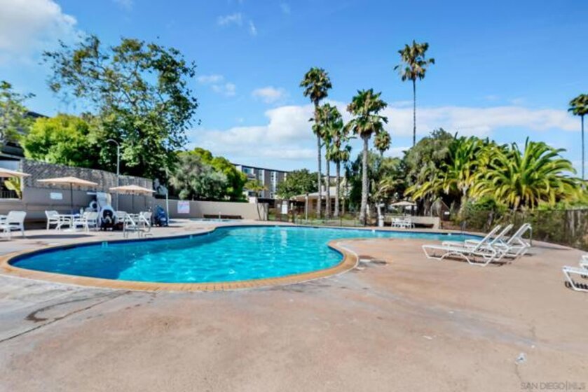 Enjoy coastal living in a resort-style setting minutes from the beach! This lovely one-bedroom, one-bathroom unit overlooks the bountiful community courtyard, which contains debatably the best resort-like amenities of any condo building in San Diego. This complex includes a pool and spa with showers, BBQ area, sand volleyball courts, lighted tennis/pickleball courts, a gym with a steam and dry room, a recreation room with a full kitchen for private events, a pond and a stream, a gazebo, and a game room with foosball, a pool table, and ping pong tables. The unit also has in-unit washer and dryer, all appliances included, and a community laundry room. You can walk or bicycle to dozens of eateries and shopping in Point Loma, Ocean Beach and Mission Beach. Please come treat yourself to see how the other half lives!