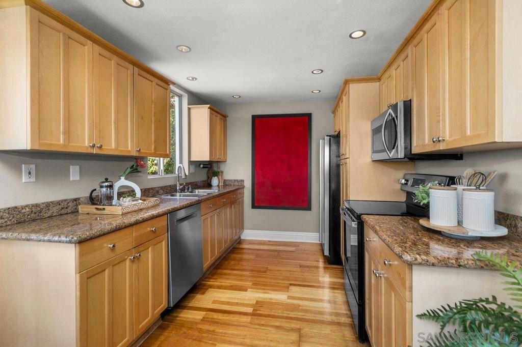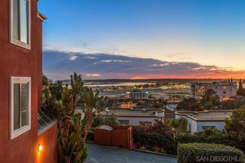 This stylish 2-bedroom, 2-bath condominium is located in the highly sought-after Mission Hills community and offers spectacular panoramic views of the bay, ocean, and city from a desirable corner unit. The open concept layout features a large kitchen with slab countertops, stainless steel appliances, wood floors, crown molding, custom baseboards, plush carpeting, recessed lighting, a cozy fireplace, in-unit laundry with a full-size washer and dryer, and abundant natural light throughout. The primary suite boasts a newly remodeled, spa-like bathroom. Step outside to a spacious private view deck perfect for relaxing or entertaining. The home includes two parking spaces and is ideally situated near top-rated restaurants, shopping, entertainment, and all that San Diego has to offer. This is a must-see property!