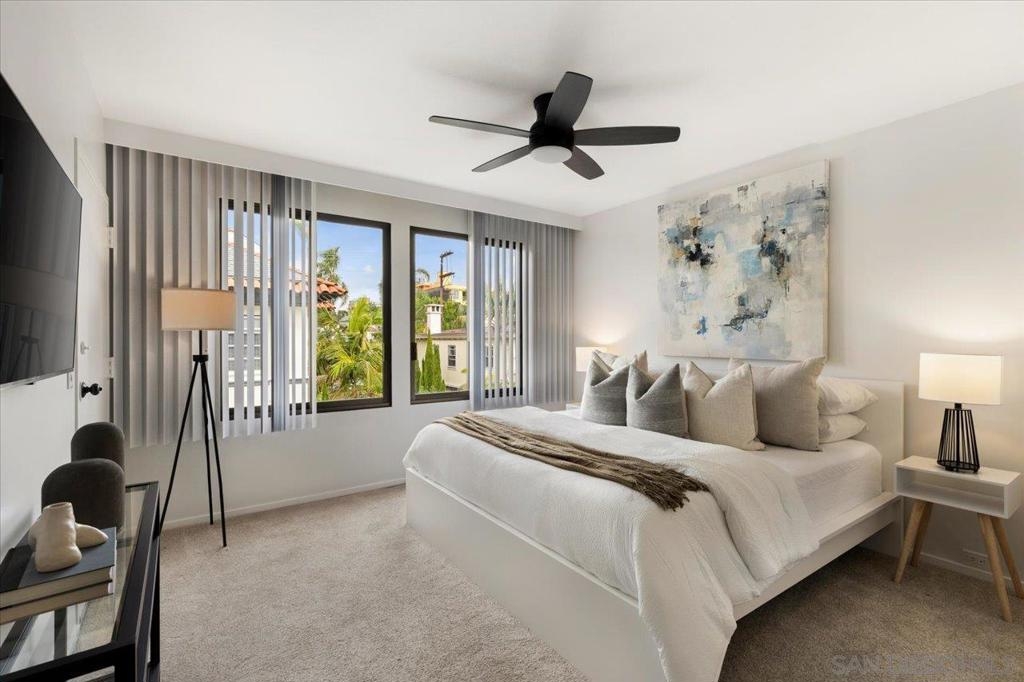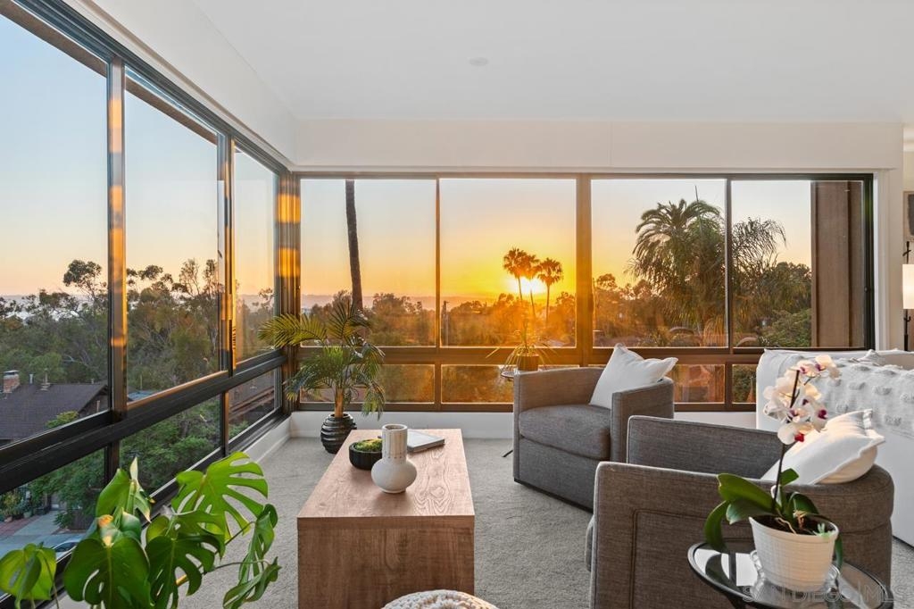 Updated Pricing! Rare opportunity at exceptional value. Sophisticated single-level residence with panoramic views! Experience elevated living in this oversized 2,294 sq. ft. single-level residence, where elegance and expansive views converge. From sunrise to sunset, enjoy sweeping 180-degree vistas—city lights, ocean horizons, the peninsula, and lush tree-lines—spanning south and west. Set within an exclusive 8-residence boutique building, the home offers rare privacy, a quiet elevator, and secured parking. Nestled in the heart of Bankers Hill, you’re just steps from Balboa Park, Downtown, and the iconic 7 Bridges walk. Inside, a professional remodel blends modern design with thoughtful detail—smooth textured walls, integrated sound, automated shades, updated lighting, and premium flooring. Abundant closets and built-in storage maximize convenience throughout. The open-concept living and dining spaces flow seamlessly with a wraparound backdrop of views. The remodeled kitchen balances function and style, while the flexible third bedroom/office also captures western exposure. Retreat to a spacious primary suite with a spa-inspired bath featuring a soaking tub, walk-in shower, and expansive closet. A light-filled secondary suite offers its own marble bath and large walk-in. The full-size laundry room, reimagined with custom cabinetry and oversized sink, adds everyday ease. A rare blend of exclusivity, craftsmanship, and location—this home defines refined San Diego living.