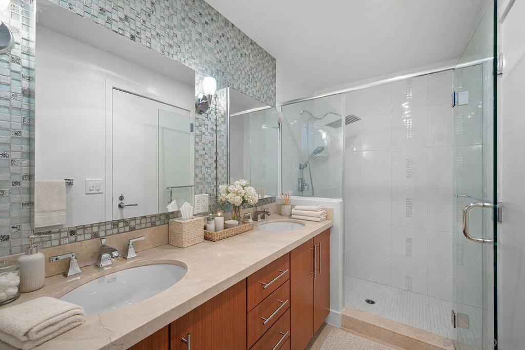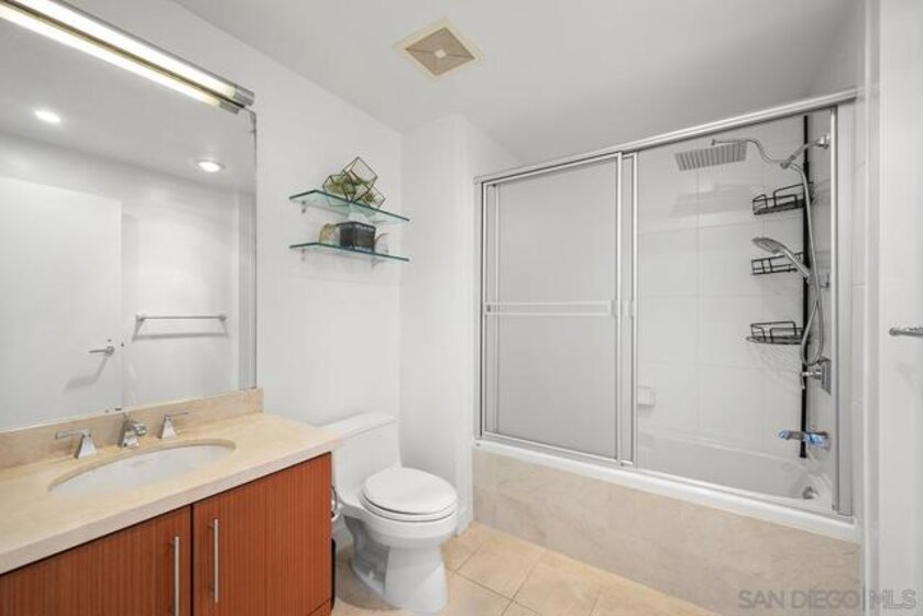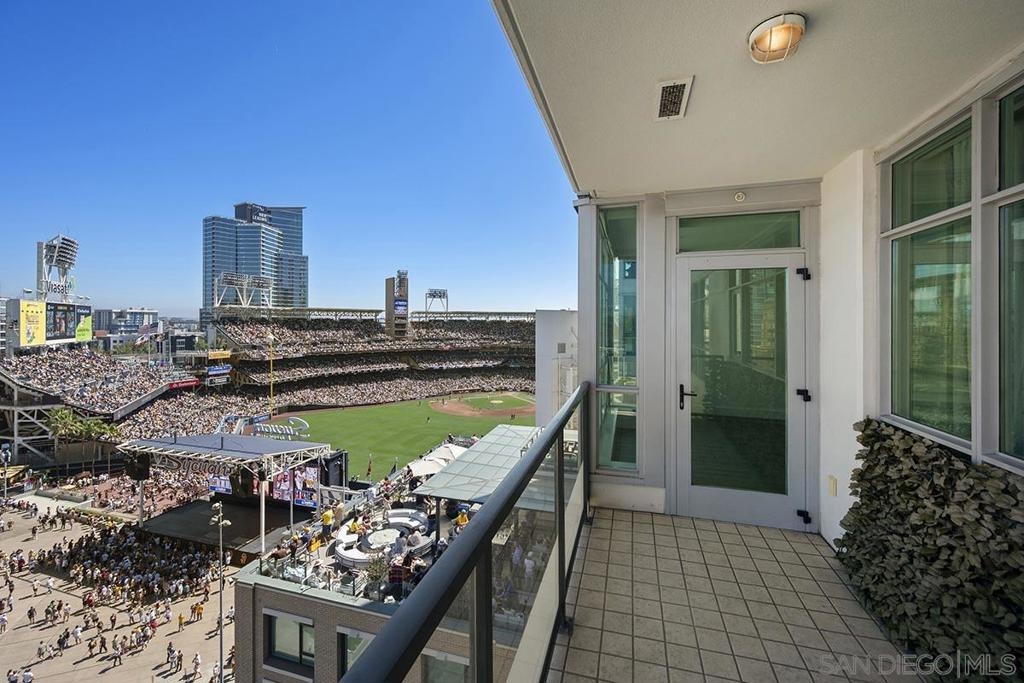 This 10th floor 2-bedroom, 2-bath condo at The Legend delivers exactly what the address promises — front-row seats to San Diego's most iconic neighborhood. The views look directly into Petco Park, meaning baseball games and open-air concerts are as much a part of your living room as your own furniture. The spacious balcony extends that experience outside, and when you want to take it to the next level, the 7th floor deck, ‘Club Legend’ is one of the best amenity spaces in all of Downtown. Inside, the home has been freshly painted and outfitted with newer grey LVT flooring throughout, giving the space a clean, cohesive feel from room to room. Expansive windows bring in generous natural light throughout. The open-concept kitchen features granite counters, stainless appliances including a modern 4-door refrigerator, and a layout that flows easily into the living and dining areas. One of the building's best parking spaces and a private storage unit just steps from your front door round out the package. See supplement for more details. The gourmet kitchen is a chef's dream, showcasing top-of-the-line stainless appliances, granite countertops, European-style cabinetry, and an inviting eat-at bar illuminated by elegant pendant lighting. Floor-to-ceiling windows not only flood the condo with natural light but also offer breathtaking, unobstructed views of Petco Park and Gallagher Square. Split-bedroom floor plan perfect for privacy for roommates or guests. The primary bedroom suite doesn’t skimp on views either. The ensuite bathroom features a dual vanity, tasteful custom tile backsplash, and frameless glass-enclosed shower. The Legend is the only residential high-rise to be built inside the gates of our Major League Ballpark & the only residential tower to be built on the 3-acre Park at the Park / Gallagher Square! This iconic building overlooking the Padres ballpark (voted the best ballpark in America) will be treasured for generations with historic detailing preserved by Bosa to create a world-class residential tower. Legend is centrally located just a few blocks from the Gaslamp Quarter & Marina District for convenient access to endless shopping & dining options. Legend’s amenities include a 2nd floor rooftop deck looking out over Park at the Park complete with pool & spa, fully equipped fitness room, roof garden, barbeque area, steam, sauna, and changing rooms. Your guests & clients will love 'Club Legend' located on the 7th floor, complete with a huge roof deck overlooking Petco Park and an outdoor fireplace lounge, as well as guest parking spaces, available by reservation through a simple mobile app. The concierge service and, 24-hour security add a sense of belonging while an ambiance of refinement & contemporary sophistication is apparent throughout the building.