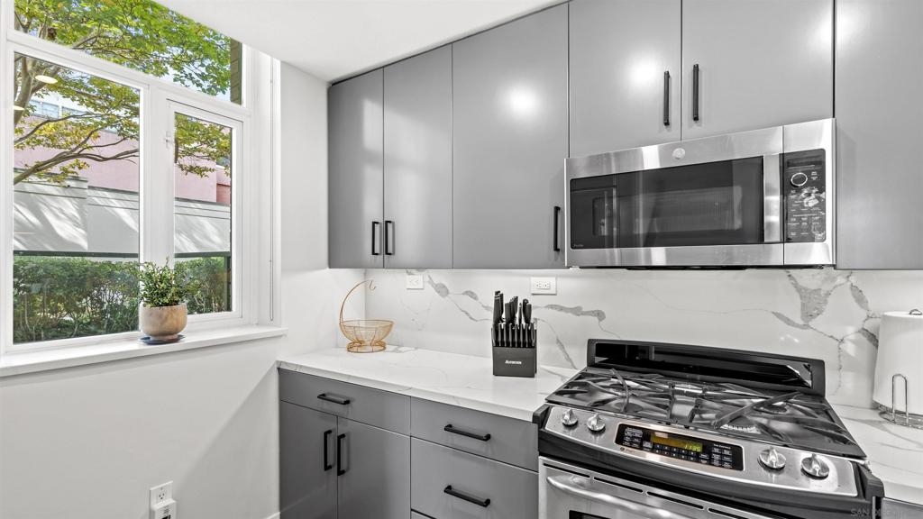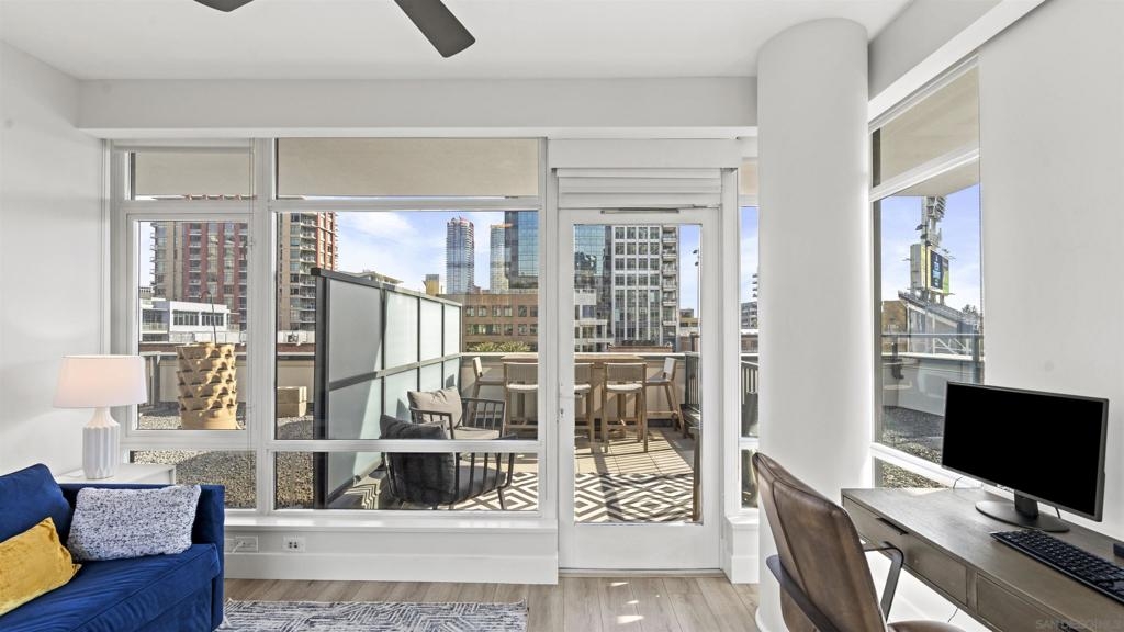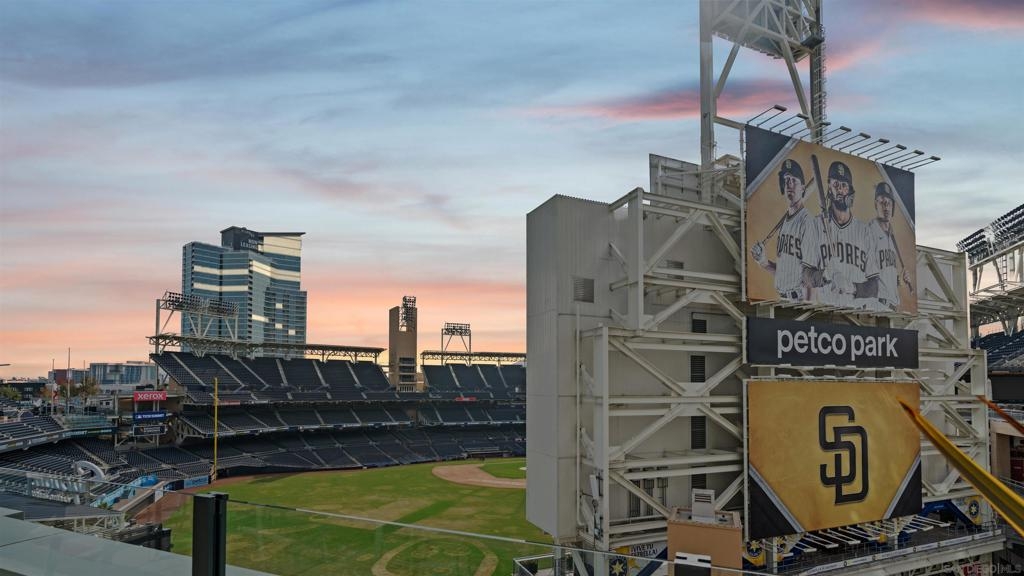 Rarely available townhome at The Legend—lives like a single-family home with four private patios and panoramic views straight into Petco Park and the concert stage. Fully renovated in 2022, this luxury corner residence features a designer kitchen, open living areas, guest bath, two ensuite bedrooms, and a loft leading to the rooftop patio. Includes two parking spaces, motorcycle spot, and private storage, with option to be sold fully furnished. Enjoy 24-hour security, concierge, gym, sauna, pool, BBQ areas, and the iconic 7th-floor deck overlooking Petco Park.