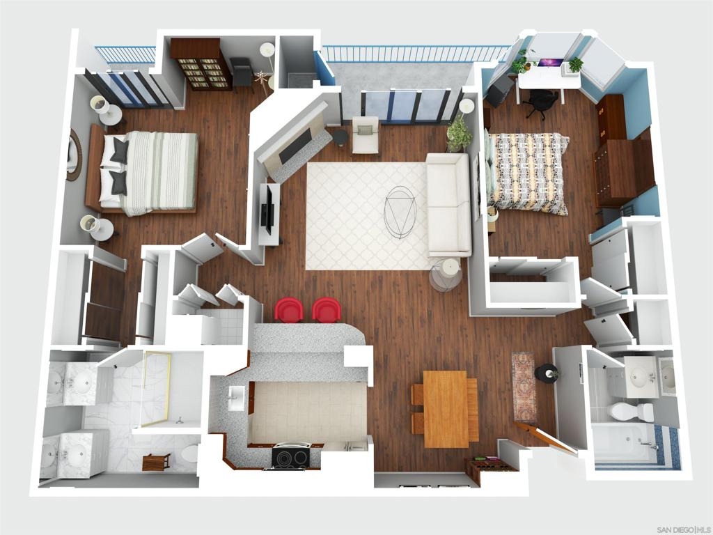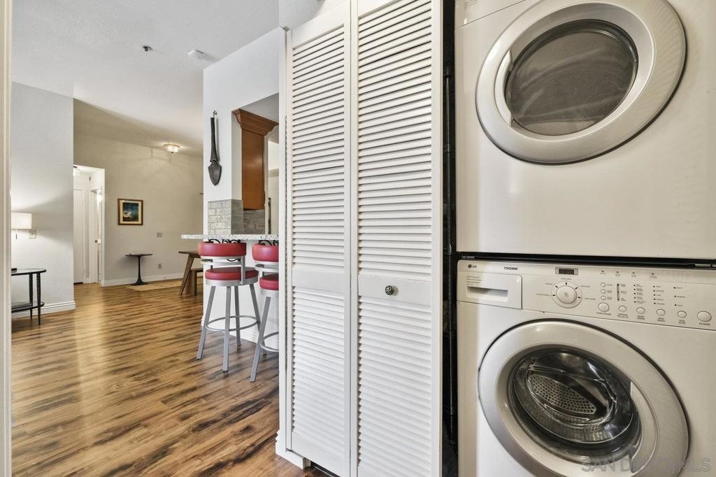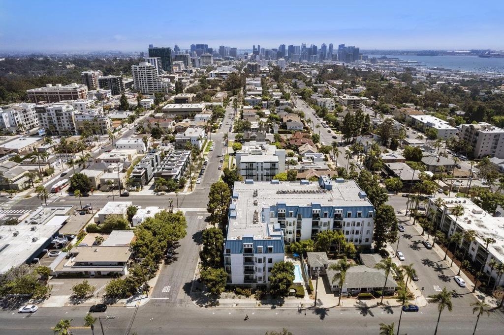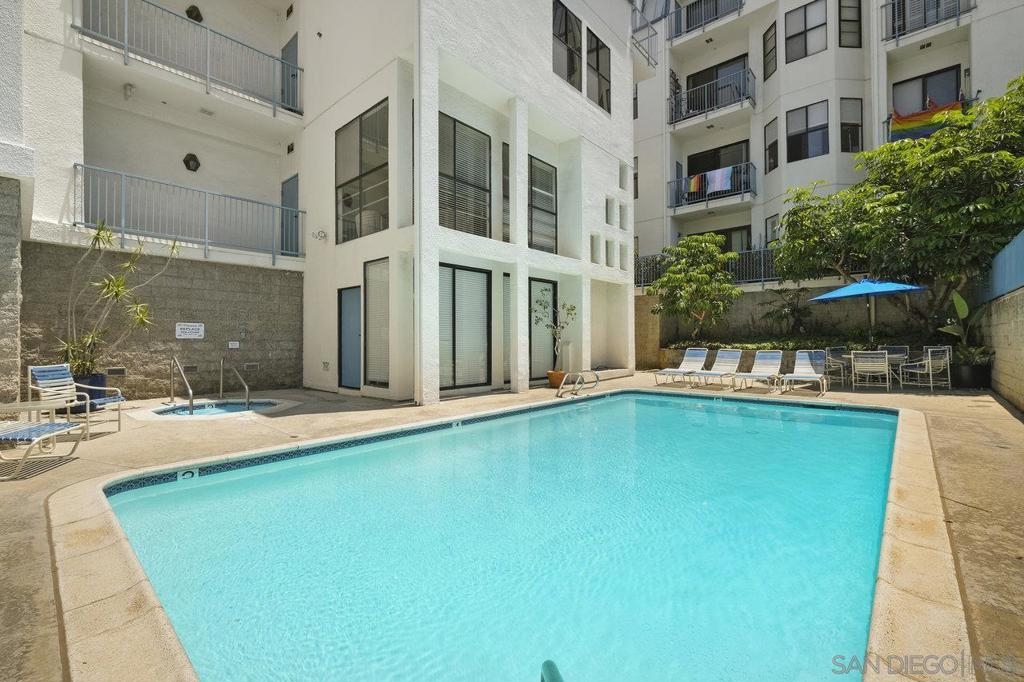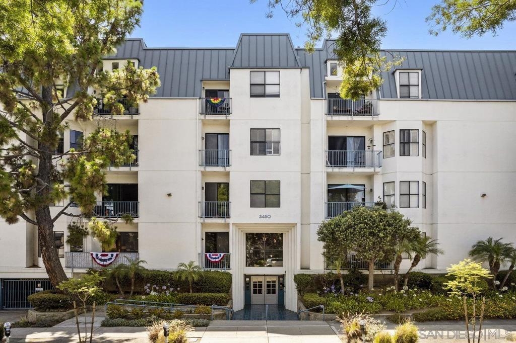 Stunning 2-bed, 2-bath condo located in the desirable Le Parc Chateau in Bankers Hill. Meticulously cared for, this spacious, single-level home features 10-foot vaulted ceilings with only one shared wall. Updated kitchen has granite countertops, wine refrigerator, limestone flooring, and stainless-steel appliances. Central heating & air conditioning, as well as a cozy fireplace in the living room. Full-sized washer & dryer tucked neatly into the hallway closet. Two inviting balconies offer relaxing spots to sip your morning coffee or even grow a quaint garden! Primary bathroom features two closets, dual vanity sinks, and a walk-in shower. Gated tandem garage parking with access to a community storage room. Large pool and spa offer a place to relax or play. Balboa Park, Downtown San Diego, the airport, bay, and beaches are all nearby without ever needing to get on the freeway. Highly accessible neighborhood close to fantastic restaurants, boutiques, and more!