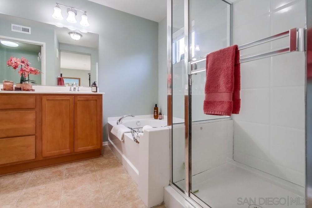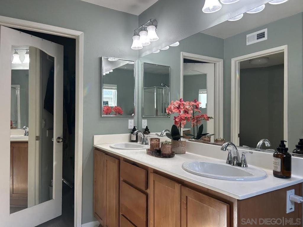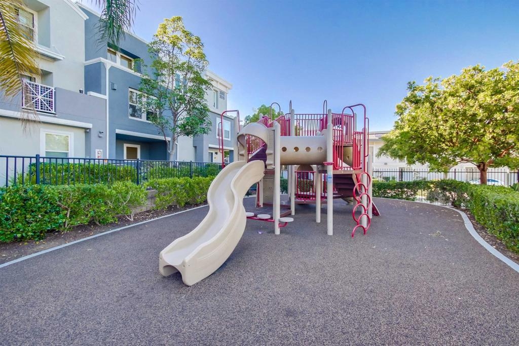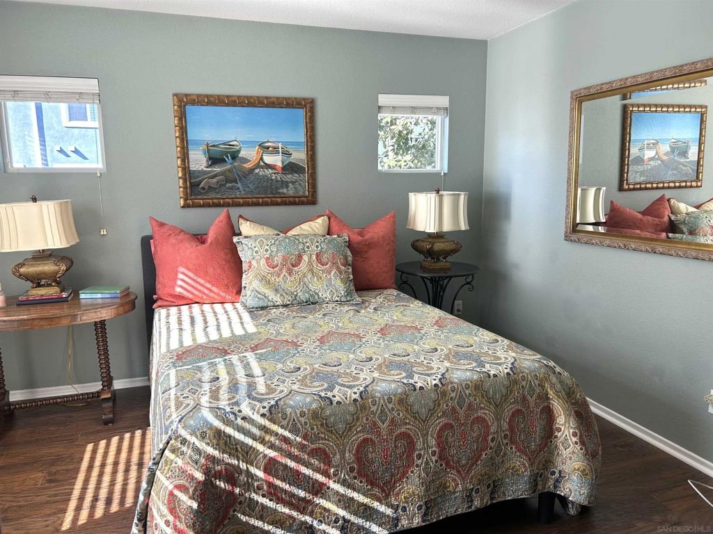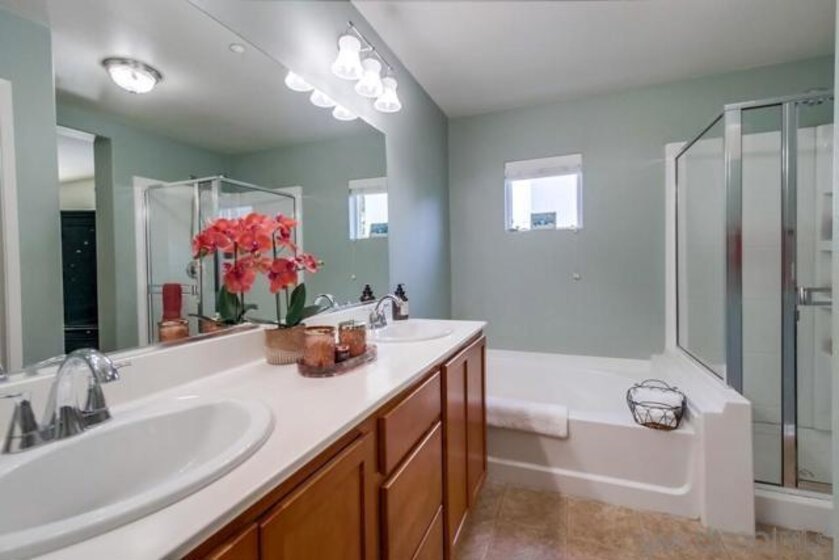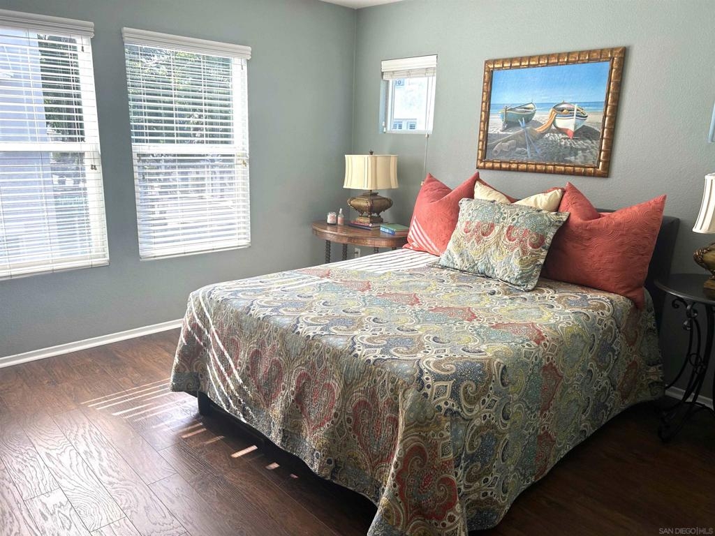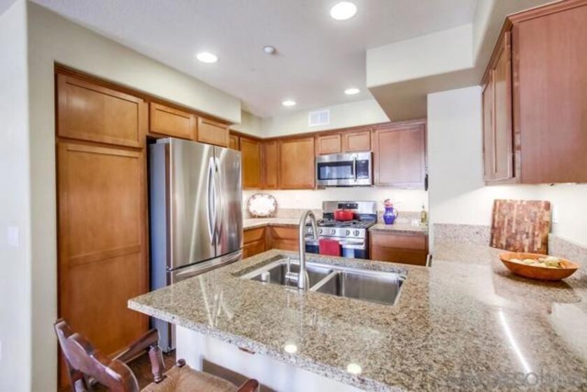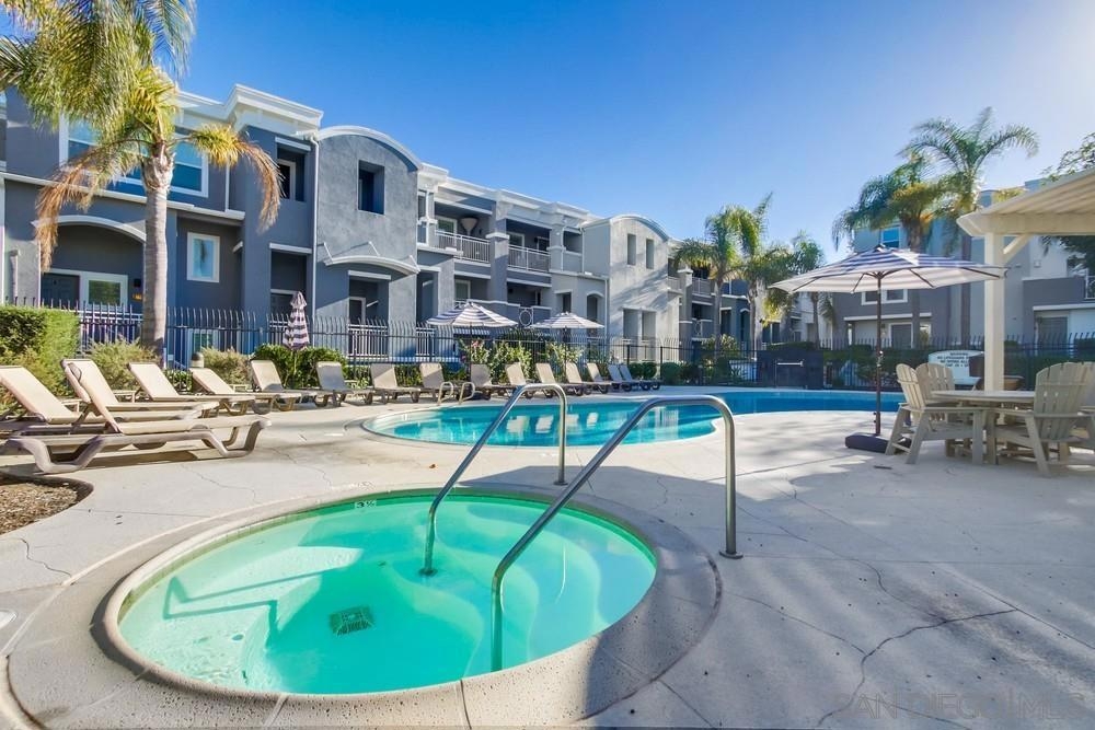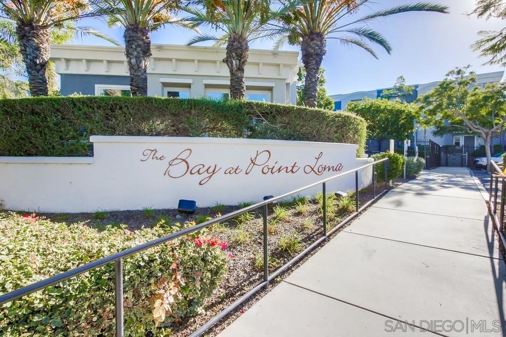 A hidden gem in POINT LOMA, a rare 3 Bedroom corner unit in the community "The Bay at Point Loma" is now available. This gated/private end unit has north west facing windows with an expansive floor plan invoking the feel of a single level home. Spacious great room layout/living and dining room, open to the attached private balcony. The upgraded kitchen with state of the art appliances has bar seating, granite counters, and plenty of cabinet space. Large primary bedroom has a walk-in closet, en-suite with dual sinks, an over sized soaking tub and a separate shower. Additional features include, a full size interior laundry room, full size 2nd bathroom, luxury vinyl plank flooring throughout and central A/C. The huge attached 2+ tandem garage has lots of storage and is finished with drywall and an epoxy floor. Garage has direct entry to the home. This beautiful resort style gated community includes a playground, salt water pool, spa, club house, BBQ's, lush landscaping and Security Patrol.