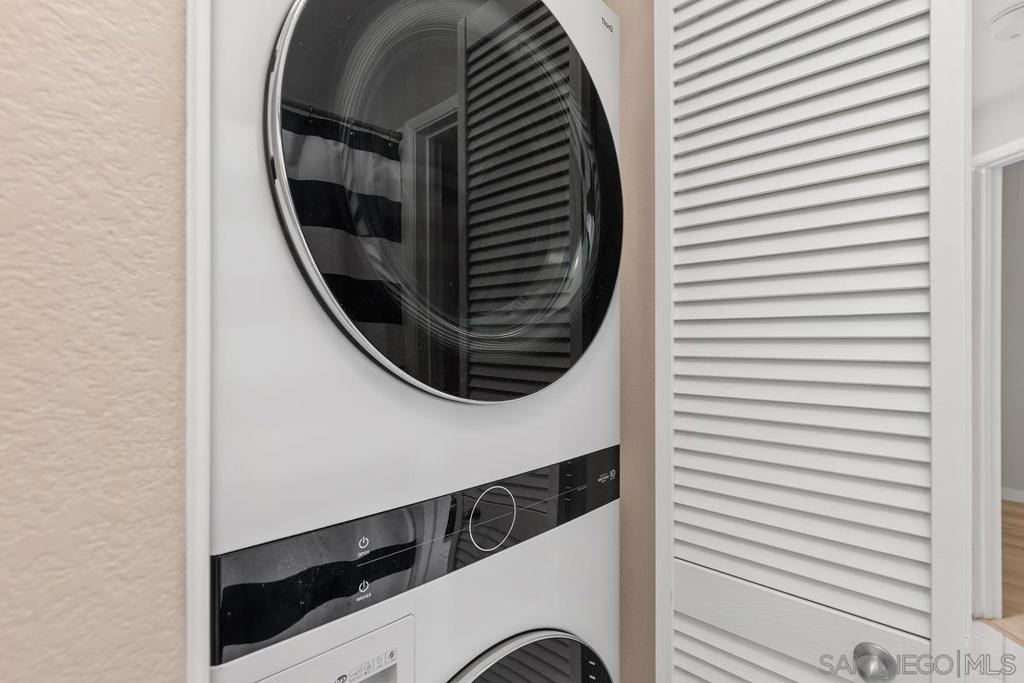 Discover urban tranquility and style in the heart of the Marina District. This beautifully updated 2-bedroom, 2-bath condo offers a thoughtfully designed open floor plan and resort-style amenities including a fitness center, landscaped courtyard, and meeting room, plus a rooftop deck with BBQ and lounge seating with impressive city views. Inside, the home has been tastefully upgraded with wide-plank flooring, stainless steel appliances, granite countertops, and an updated kitchen and primary bath. Oversized windows bring in abundant natural light, and the west-facing balcony offers a pleasant outlook. Additional upgrades include updated fans and fixtures, plus many more improvements throughout. Additional benefits include an in-unit washer/dryer, two assigned parking spaces in the secure parking garage, and some of the lowest HOA dues in the area—covering dedicated WiFi, water, and trash. Step outside and enjoy the best of downtown San Diego—Petco Park, the Convention Center, the Gaslamp Quarter, and the waterfront are all just minutes away—making this an ideal place to live, work, and play.