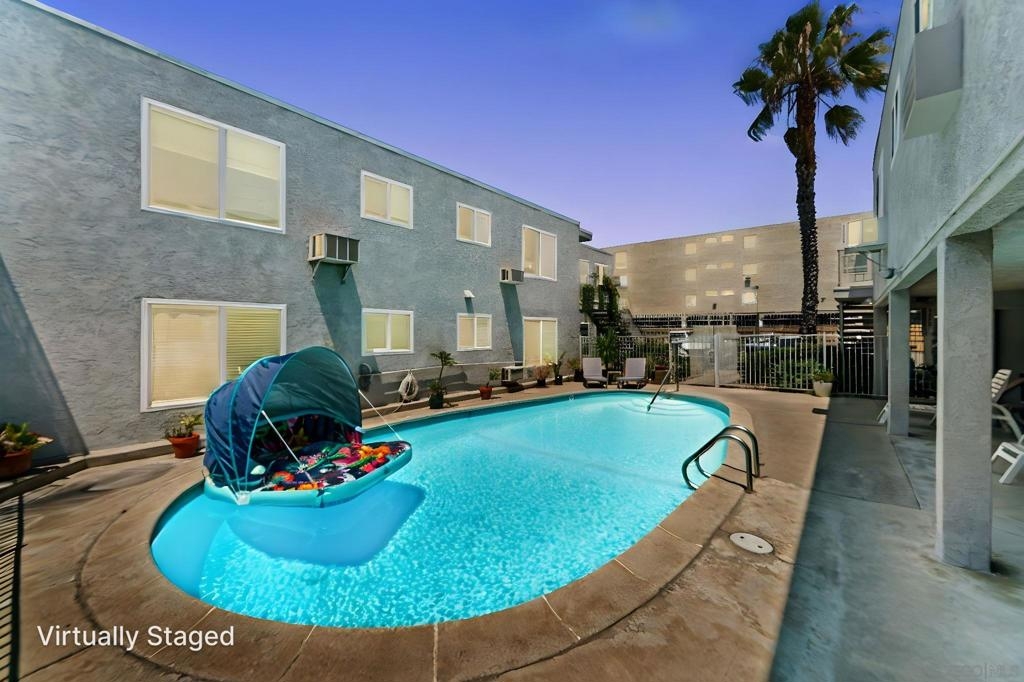 Why rent when you can own in one of San Diego’s most vibrant neighborhoods? This updated top-floor 2BR/2BA condo in the gated Cityscape community offers the perfect balance of comfort, convenience, and value. Step inside to find a bright, open living space with dual-pane windows, plantation shutters, and stylish laminate flooring. The kitchen features granite counters, stainless steel appliances, and a breakfast bar, perfect for casual dining or entertaining. Both bathrooms have been refreshed with new vanities, sinks, and faucets, while three new ceiling fans add comfort throughout. The primary suite offers its own bath and generous closet space, while the second bedroom is ideal for guests, a home office, or a roommate. Enjoy the view of the peaceful landscaped courtyard from your private retreat. Community amenities include a sparkling pool, BBQ area, outdoor seating, and gated entry. Laundry is on-site, with the option for an in-unit hookup (with HOA approval). Assigned parking space (#157) is included. Best of all, this home is just a quarter mile from Adams Avenue with its dining, shopping, and nightlife, and close to Kensington, Normal Heights hot spots, and freeway access. VA-approved complex and eligible for low down payment financing programs, making this an excellent opportunity for first-time buyers to build equity. Priced below market won't last!