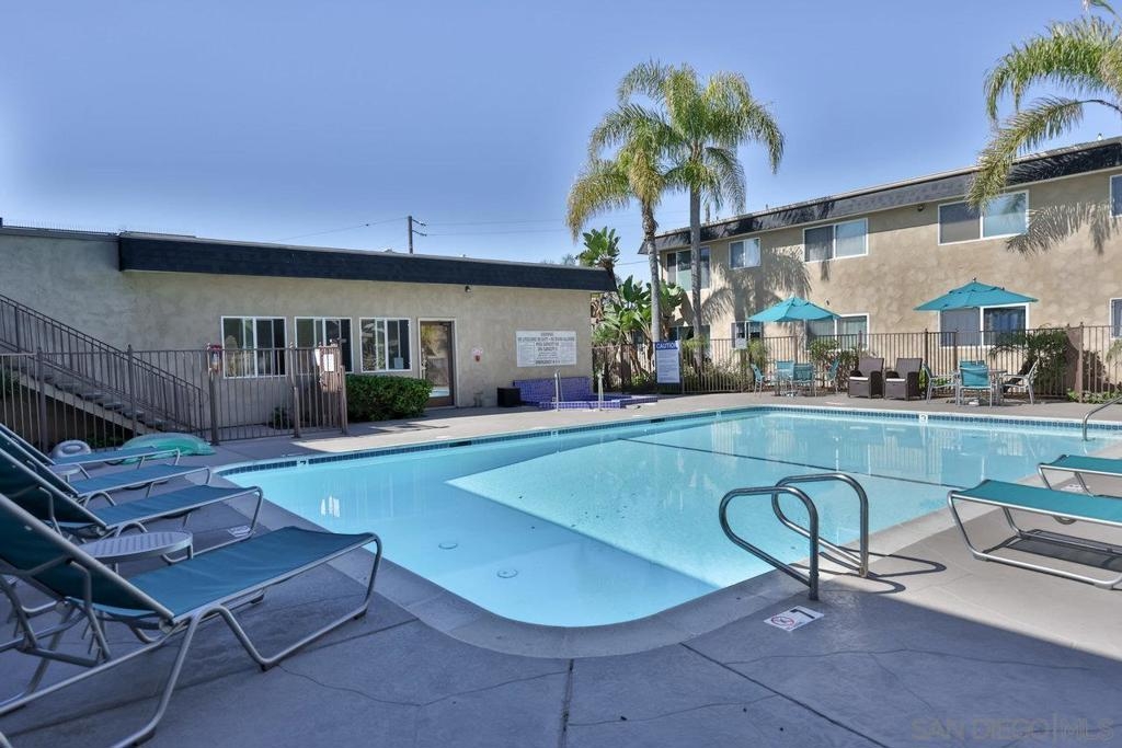 Welcome Home to Unit 110 in the gated Adela community, which sits about a block from Adams Avenue in Normal Heights. With all the units windows looking into the community, you will have views of the lush greenery along the walkways throughout the community. The journey around the community is lined with walkways surrounded by meticulously maintained greenery. You can enjoy a workout in the recently updated gym, cooling off in the pool, or relaxing in the spa. There is in-unit stacked washer/dryer. The bedroom has ample storage with the 2 in-unit closets, plus one closet outside on the patio. When you live here you’ll get to embrace the feel of the peaceful oasis that is Adela.