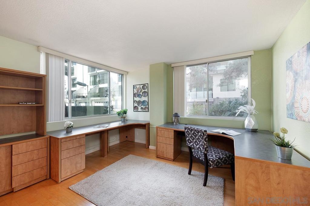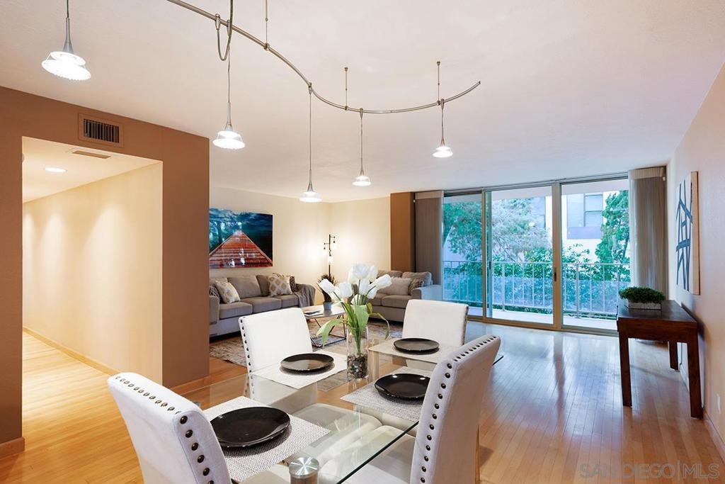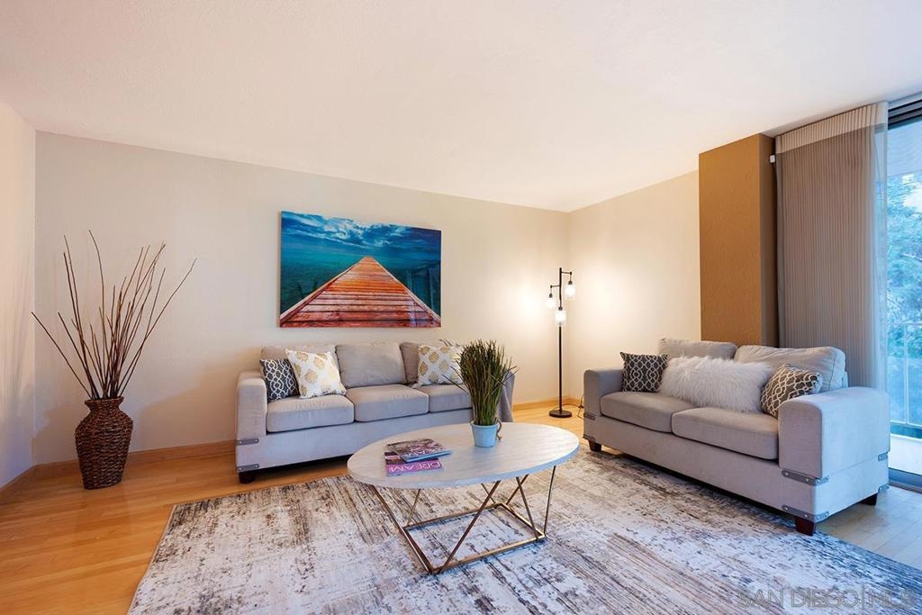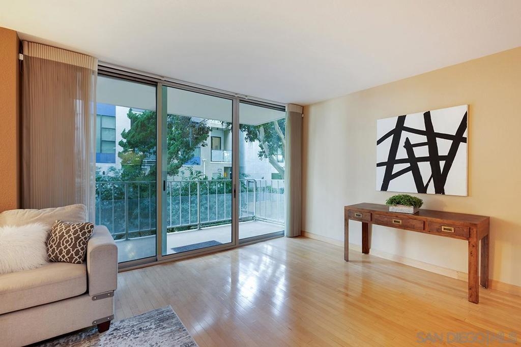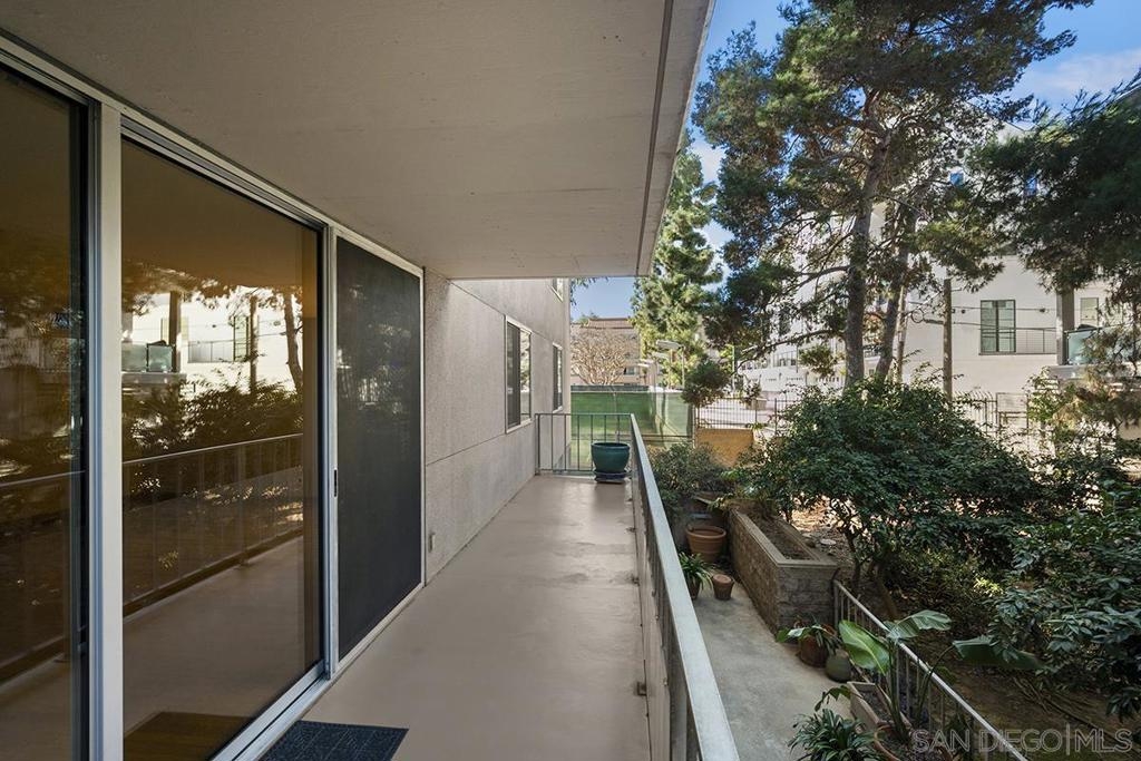 Discover the perfect blend of spaciousness and style in this northwest corner residence at Coral Tree Plaza, where urban living meets refined comfort. Sunlit and inviting, the expansive living area showcases sleek wood flooring and extends effortlessly to an oversized balcony, the largest in the complex at 30 ft. The modern kitchen boasts stainless appliances, recessed lighting, dual paned windows, ample storage, and a breakfast bar for easy, casual dining. Retreat to the generous primary bedroom, featuring a well-organized walk-in closet and an ensuite with dual vanities for added luxury. Looking for flexibility? The dining area offers the potential to transform into a fourth bedroom, adapting to your unique lifestyle needs. Additional highlights include an in-unit stackable washer and dryer, a private storage room, and two valuable side-by-side parking spaces. Located just steps from the vibrancy of Balboa Park and Hillcrest, this home puts the best of city living right at your doorstep. Embrace effortless urban living in style! As one of Hillcrest's premier residential destinations, Coral Tree Plaza defines urban sophistication with a remarkable selection of amenities. The property features a sparkling swimming pool, a relaxing spa, beautifully maintained tennis courts, and a state-of-the-art fitness center for those with an active lifestyle. Residents enjoy the convenience of guest suites and a spacious club room, complete with a charming vintage-style fireplace, ideal for gathering with neighbors and fostering community spirit. Pet owners will appreciate the on-site dog run, and ample parking ensures guests always feel welcome. Ideally located, Coral Tree Plaza offers effortless access to the vibrant village of Hillcrest and the peaceful greenery of Balboa Park. For a taste of downtown’s energetic pulse, it’s just a quick drive away. Living at Coral Tree Plaza goes beyond simply having a home; it’s an invitation to enjoy an unparalleled lifestyle that seamlessly blends luxury, comfort, and urban convenience.