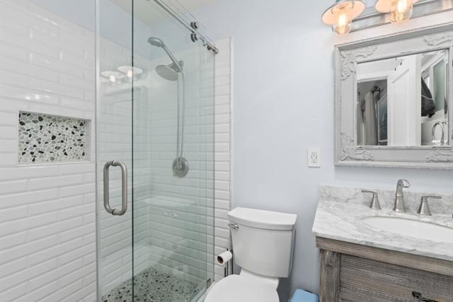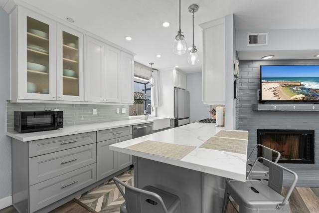 Rare opportunity to own a beautifully renovated three-bedroom condo in the highly desirable coastal Point Loma neighborhood with TWO parking spaces. This single level home showcases refined upgrades including custom marble flooring in one of the bathrooms, AC, dual pane windows, elegant plantation shutters, interior W/D, abundance of storage with an expansive private yard; just a few highlights that make this property truly special! The Bay Crest complex is a hidden gem located in the heart of the coastal neighborhood of Point Loma. Situated on a quiet street, steps to shopping, restaurants, sport parks, beaches and a short drive to the airport makes living coastal San Diego lifestyle a breeze. Lives like a single-family home with TWO parking spaces directly in front of the unit and a private, enclosed side, back and front yard. Enjoy the amenities with your choice of two pools, hot tub and recently renovated club house. High end upgrades such as marble flooring in one of the bathrooms, remodeled kitchen with extended counter space, full size washer and dryer, fireplace, multiple outdoor areas are just some of what makes this unit so special.