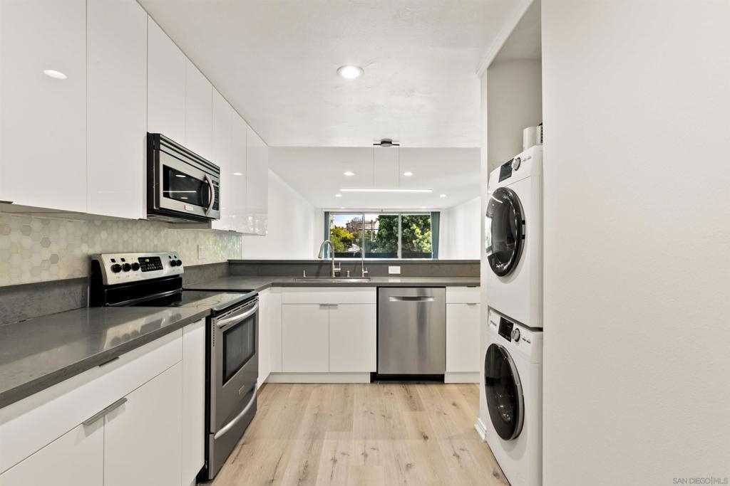 Ideally located in the heart of Hillcrest, just steps from shopping, markets, and restaurants! This bright second-floor, south-facing corner unit features a remodeled kitchen and updated bathrooms, in unit washer/dryer and an open floor plan that flows onto a private balcony filled with natural light. The primary bedroom offers direct access to the balcony for seamless indoor-outdoor living. The building offers a gated entry and secure parking garage. *Some photos have been staged and enhanced using AI