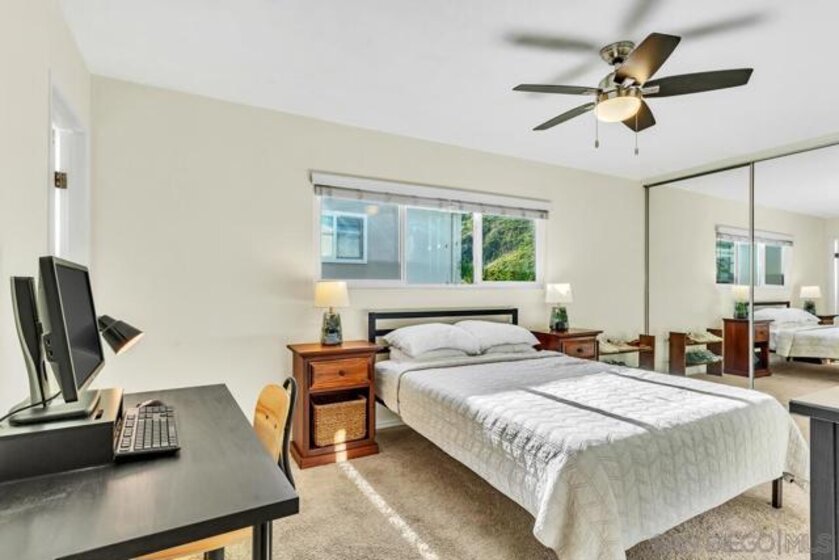 Tucked away from the main roads in the desirable Bay Crest community of Point Loma, this top-floor condo offers comfort, style, and convenience in one beautiful package. Filled with natural light, this spacious second-floor unit features a functional floor plan and inviting living spaces. The large living room includes an elegant fireplace—perfect for cozy evenings—and opens to the dining area and galley-style kitchen. Enjoy your morning coffee or evening breeze on the private balcony with views of the lushly landscaped community grounds. Both bedrooms are generously sized with ample closet space, and the primary suite includes an ensuite bathroom for added privacy. Additional highlights include in-unit laundry and an assigned tandem parking space. Bay Crest residents enjoy access to two sparkling pools, a clubhouse, and a small dog park. Ideally located just minutes from Sunset Cliffs, Ocean Beach, Mission Bay, Liberty Station, Downtown San Diego, and major freeways—plus great schools, grocery stores, restaurants, and parks nearby—this condo truly places you at the center of coastal San Diego living.