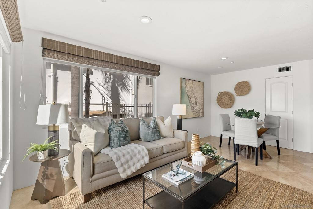 Grab your beach chair and towel! From your front door to toes in the water, you are just a straight shot and a few steps away to Sail Bay and the boardwalk. This light and bright mint condition move in ready single-level condo features an inviting open living and dining area great for entertaining. Enjoy your outdoor patio to soak in the amazing weather. Designed for easy “lock-and-leave” convenience, this home is ideal as a primary residence, vacation home, or income-producing investment property. A rare and highly desirable bonus is the direct access attached one-car garage, full size laundry area, PLUS an additional assigned parking space. This prime Crown Point location offers the best of San Diego living with walking, biking, rollerblading, paddle boarding, kayaking, and boating right at your fingertips. Stroll to Fanuel Street Park, Crown Point Shores & Park, the iconic Catamaran Resort Hotel & Spa, beaches, restaurants, and more.