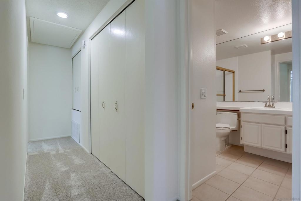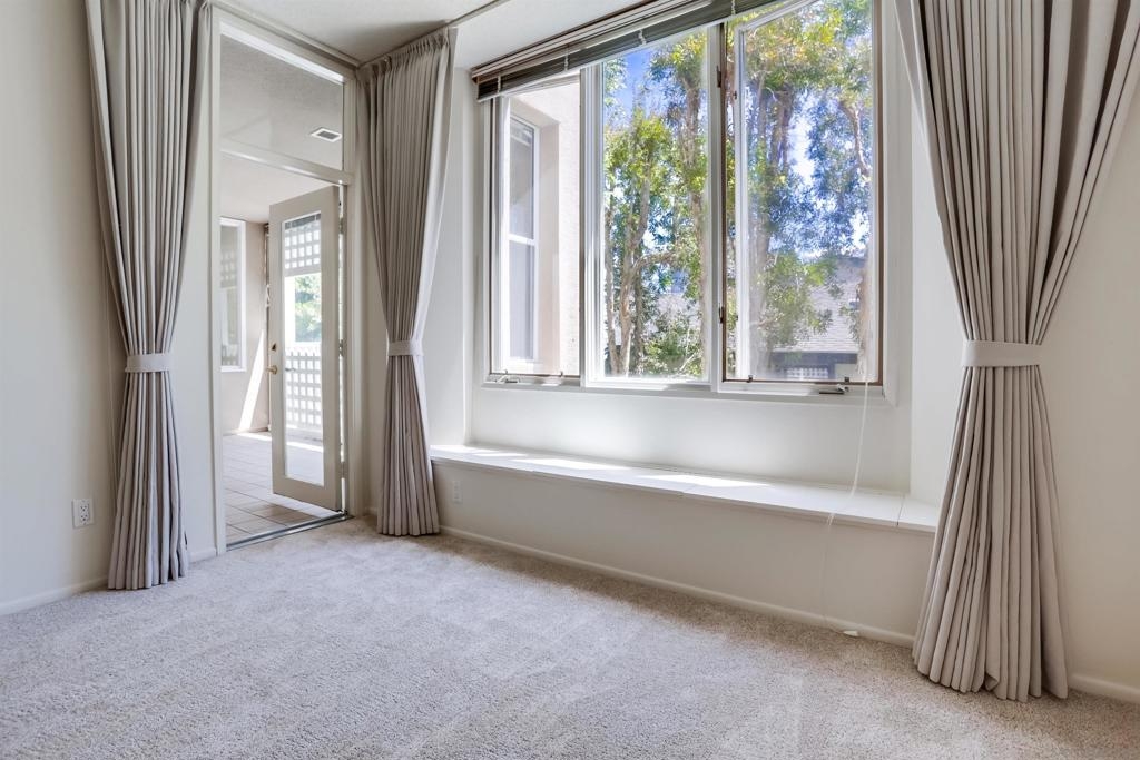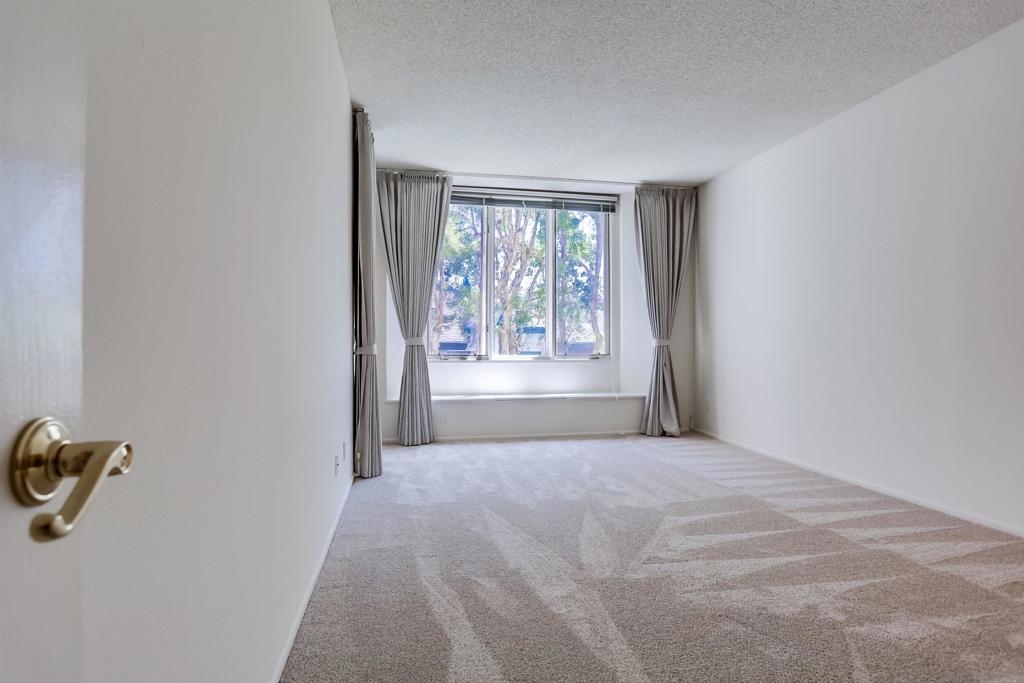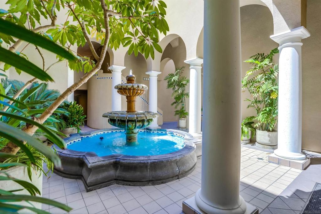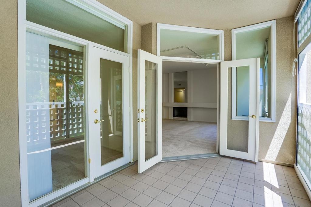 Quiet bright 2nd floor condo in great condition enclosed sun-room. Full kitchen appliances, tile counters, high ceilings, A/C, track lighting, full size washer & dryer, Hot water & trash included. 2 assigned parking spaces in under ground garage, very nice complex has pool, spa & tennis court. Close to UCSD shuttle stops, near Fwy 5 and UTC Mall. The spacious quiet unit in back of the complex not facing busy street, elevator close, peaceful relaxing huge water fountain sparkling at court yard & entrance.