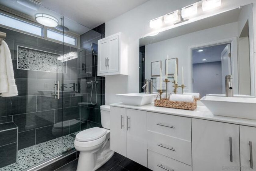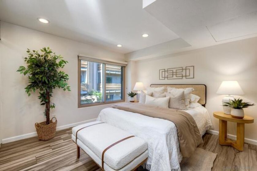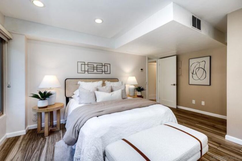 Welcome to resort-style living in the highly desirable Point Loma Tennis Club community! This beautifully upgraded 2-bedroom, 2-full bath townhome features air conditioning and a thoughtfully designed great-room layout with the living, dining & kitchen spaces seamlessly open—perfect for everyday living & entertaining. Gorgeous wood style embossed porcelain tile flooring throughout, complemented by recessed LED lighting, designer window treatments & an enclosed staircase with added storage beneath. The stunning kitchen showcases quartz countertops, stainless steel appliances, upgraded cabinetry, glass subway tiles, a spacious pantry & a beautiful island with seating. Both bathrooms have been completely remodeled with well-appointed finishes. Additional upgrades include custom closet systems in both bedrooms & a full size high-end washer & dryer conveniently located in-unit. Enjoy outdoor living on your private balcony, plus the convenience of 1 covered carport parking space w/ 2 large storage units. Ideally located near the community greenbelt, this expansive, park-like community offers exceptional amenities including lush grassy areas, pool, spa, clubhouse, gym, tennis & pickleball courts, sports courts, billiard room, BBQ areas & more. Conveniently close to top-rated public, private, & charter schools, manicured public parks, shopping centers, and entertainment venues. All just minutes from Point Loma’s beautiful beaches, Mission Bay, parks, restaurants, Liberty Station, Shelter Island, Harbor Island & downtown San Diego. Don’t let this incredible opportunity get away! Sunset Cliffs - 6 min Ocean Beach - 5 min Mission Bay - 8 min Pacific Beach - 12 min Little Italy - 10 min Liberty Station - 6 min Downtown (Ball Park) -12 min Naval Bases - 12 min (Point Loma), 14 min (32nd St) 16 (North Island) International Airport - 9 min Old Town - 8 min North Park - 13 min Hillcrest - 11 min Balboa Park - 10 min La Jolla - 21 min Coronado -13 min Shopping (Home Depot/Target/ Trader Joe's/Fashion Valley Mall) - 5 - 11 min This two bedroom townhouse has immense upgrades throughout that have been meticulously maintained. Gorgeous finishes include custom Quartz Countertops, glass subway tiles, wood style embossed porcelain tiles, stainless steel EnergyStar appliances and custom cabinetry, quadruple-pane windows (part of the "Quieter Home Initiative"), LED lighting and ProFlo faucets, LG Washer/Dryer. Soothing outdoor area with private deck to catch the ocean breeze. Equipped with central air conditioning and heat which makes for comfortable living year round. Additional storage units and single covered parking (plenty of street parking as well). The Clubhouse is an ideal place to work from home, as well. You truly will not want to miss this extraordinary townhome within the welcoming Point Loma community.