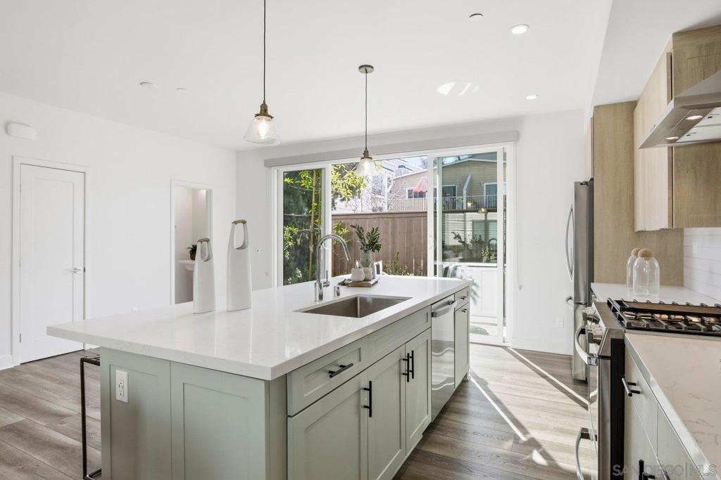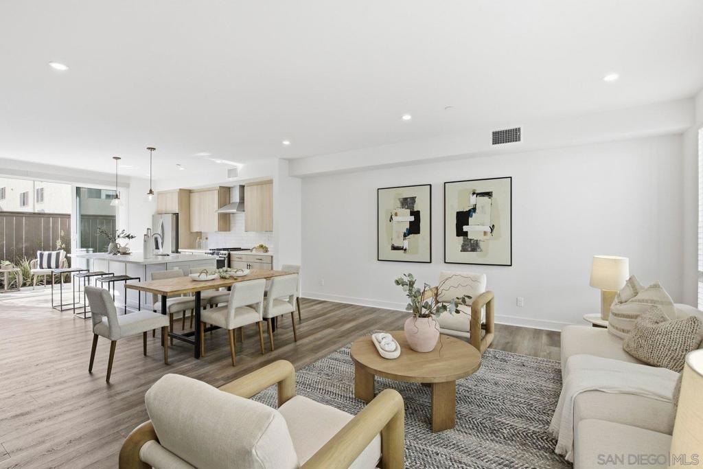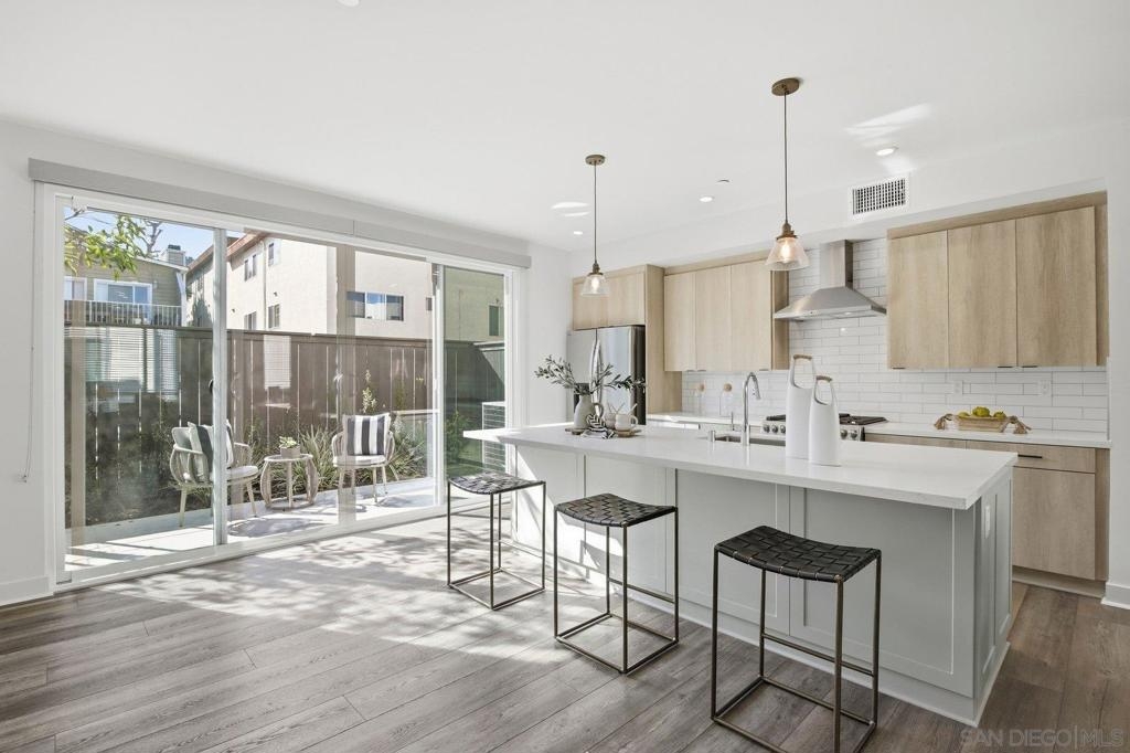 Nestled in the highly coveted Point Loma Heights neighborhood and newly built in 2024, this stunning contemporary townhome delivers modern coastal living at its best. Enjoy two stories of light-filled space within walking distance to shopping and acclaimed San Diego restaurants, and just minutes to Ocean Beach, Sunset Cliffs, Barnes Tennis and Pickleball Center and the energy of Liberty Station. Highlights include an owned solar system, central A/C, and an oversized two-car attached garage with hobby space and ample storage. The open-concept kitchen, dining, and living areas feature an expansive island, pendant lighting, quartz countertops, tiled backsplash, top-tier GE stainless appliances, a gas range, recessed lighting, and beautifully finished cabinetry with soft-close drawers. Private, enclosed landscaped patio for easy indoor-outdoor living. Luxury vinyl plank flooring runs throughout. A convenient powder room sits on the main living level, while the third floor offers a spacious primary suite and bath retreat, two additional bedrooms, and an additional full bath. Thoughtful upgrades include premium Norman sunshade blinds, a tankless water heater, vinyl windows, and a metal entry awning, along with an owned SunPower solar system and more. Contemporary, stylish, and truly move-in ready, this home checks every box.