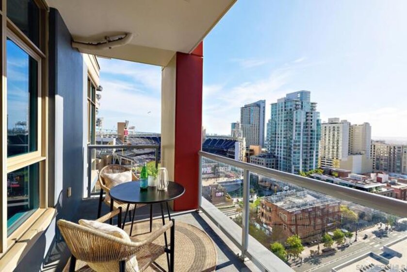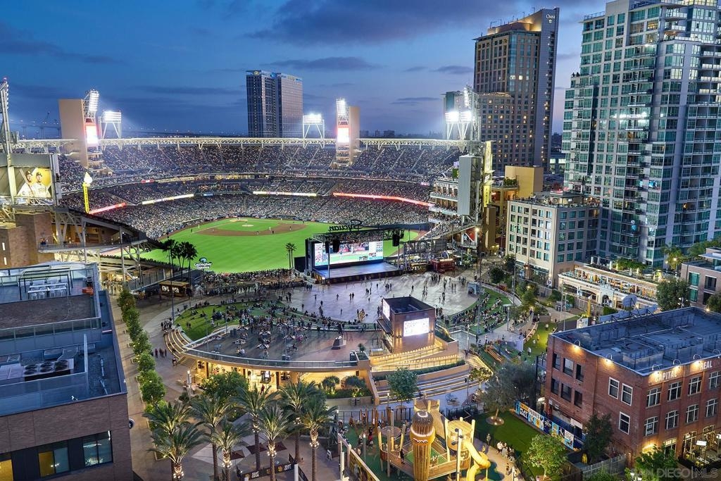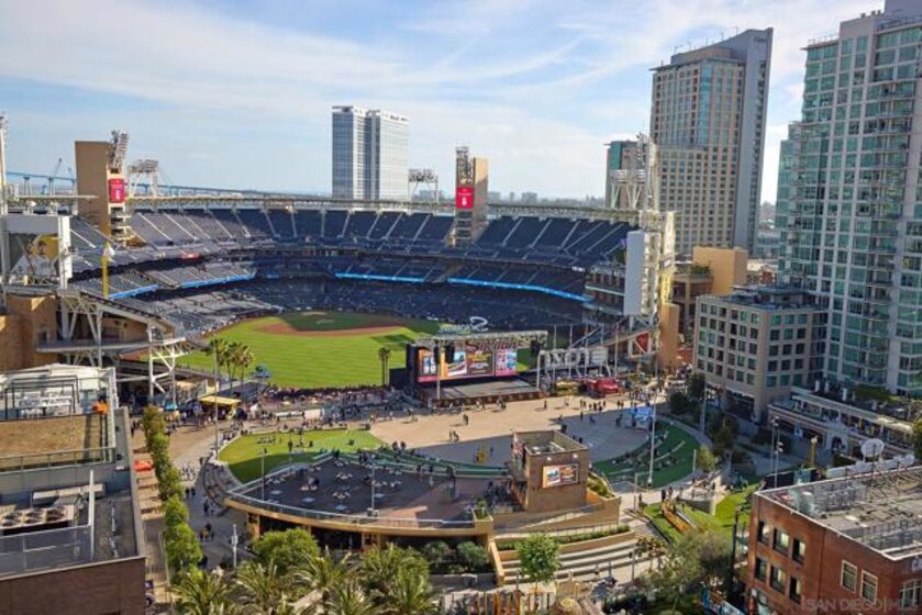 Batter Up! Step into urban luxury on the 13th floor of Diamond Terrace, offering breathtaking views of Petco Park and Gallagher Square from your private balcony—perfect for catching games, concerts, or stunning sunsets. This sleekly remodeled home features modern finishes, high ceilings, in-unit laundry, gated assigned parking, and spacious storage locker. Exclusive access to the rooftop terrace with BBQ, dining areas, fitness center and lounge, all just steps from downtown’s vibrant dining and entertainment scene. Just in time for baseball season, this stunning 13th-floor corner unit at Diamond Terrace is a home run! With JAW-DROPPING views of Petco Park, Gallagher Square, City, Coronado Bridge, and even the islands, you’ll have front-row seats to all the action—right from your private balcony. Enjoy the best of urban living with the convenience of an in-unit washer/dryer, gated assigned parking, a generously sized storage locker, and spacious rooms featuring soaring ceilings. A stylish top-to-bottom designer remodel! Common area rooftop terrace, with dining areas and BBQ, as well as a fitness center and lounge. The ideal location for easy exploration of endless dining and entertainment options that downtown has to offer. "Park at the Park" across the street is perfect for your pup. VA Approved,1 pet allowed under 100lbs, 2nd pet possible with HOA approval.