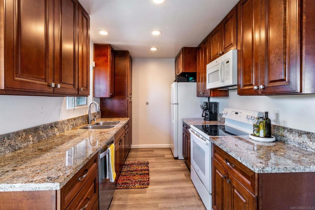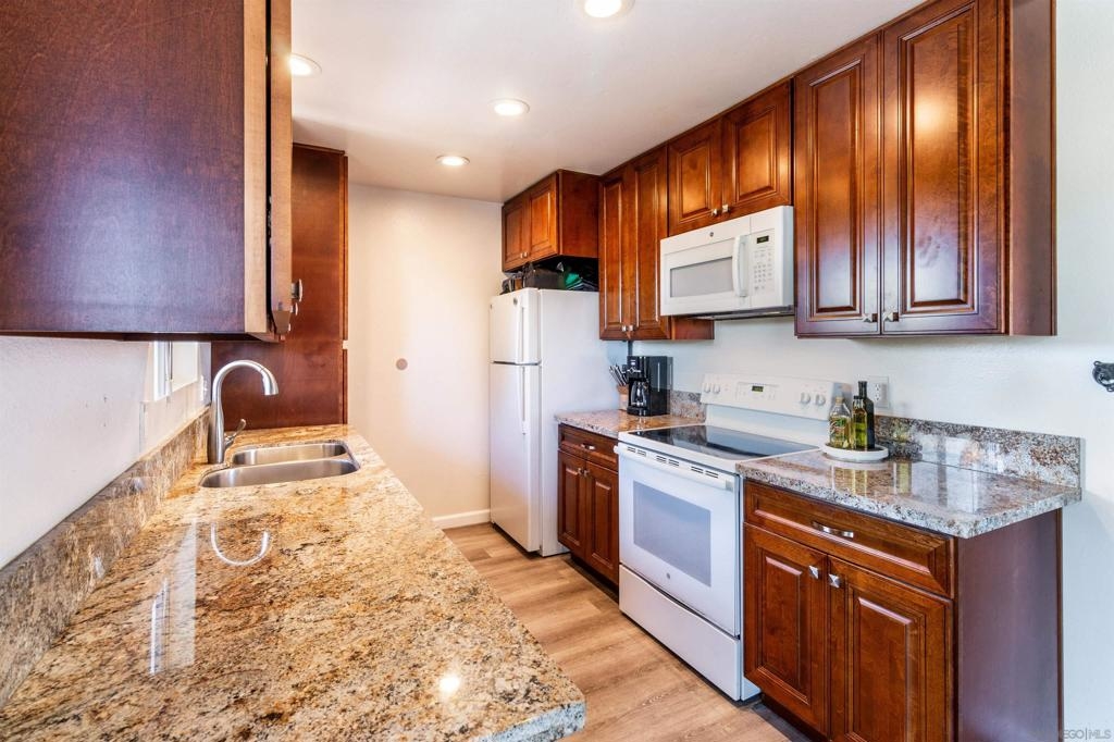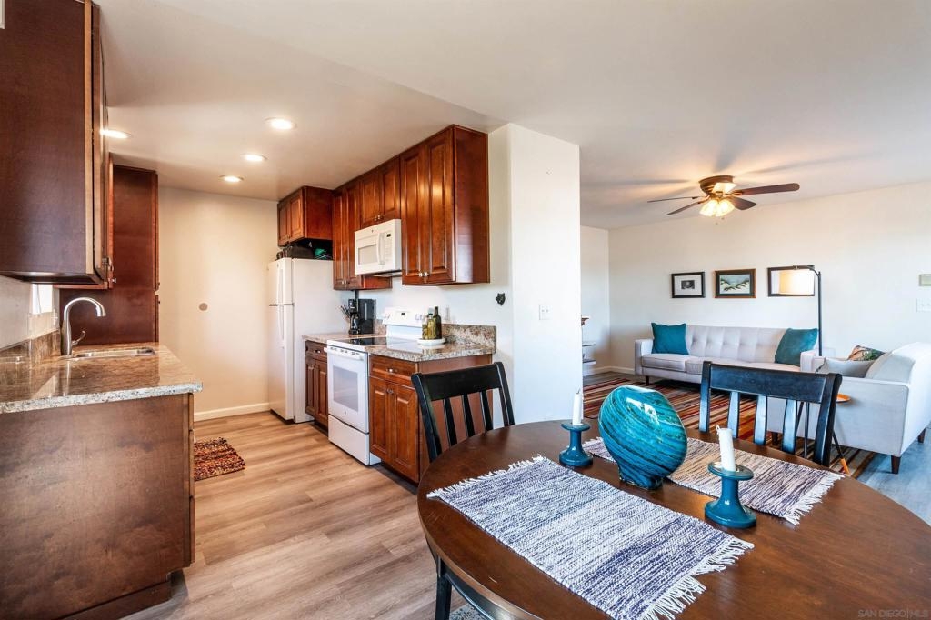 Welcome home to this impressively upgraded "Kensington adjacent" condo that caters to first-time buyers, downsizers & investors alike. Premium top floor end unit location in the front of the complex. Enjoy the numerous upgrades & amenities including LVP flooring, a beautifully remodeled kitchen with attractive granite counters & plenty of cabinet space, custom tile shower in bathroom, dual linen closets in hallway for extra storage, a walk-in closet in the primary bedroom, living room fireplace & a generously sized dining area. Enjoy morning coffee on the large east facing balcony. Numerous windows provide ample natural light. The oversized garage can accommodate a car, extra storage & offers an additional parking space in the driveway. Located on the edge of Kensington & easily accessible to the neighborhood restaurants & shopping. Easy access to freeways, downtown & the beaches. Here is your chance to own an amazingly renovated residence with low HOA fees & a convenient central location!
