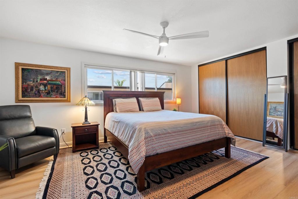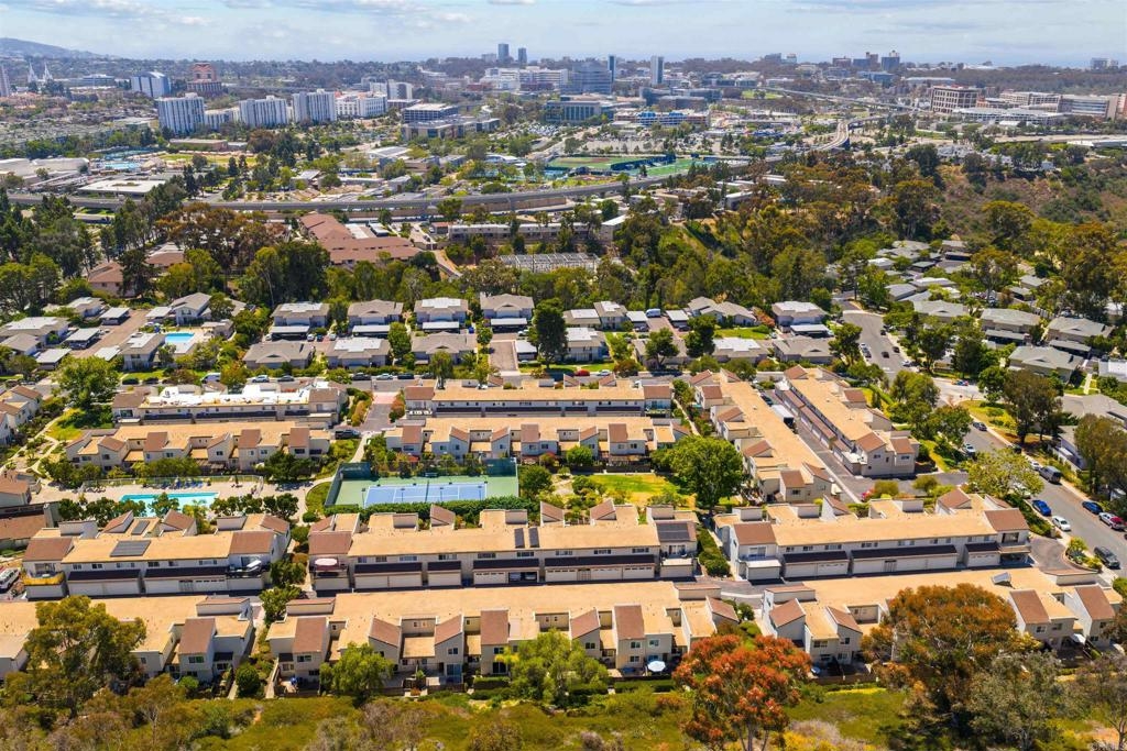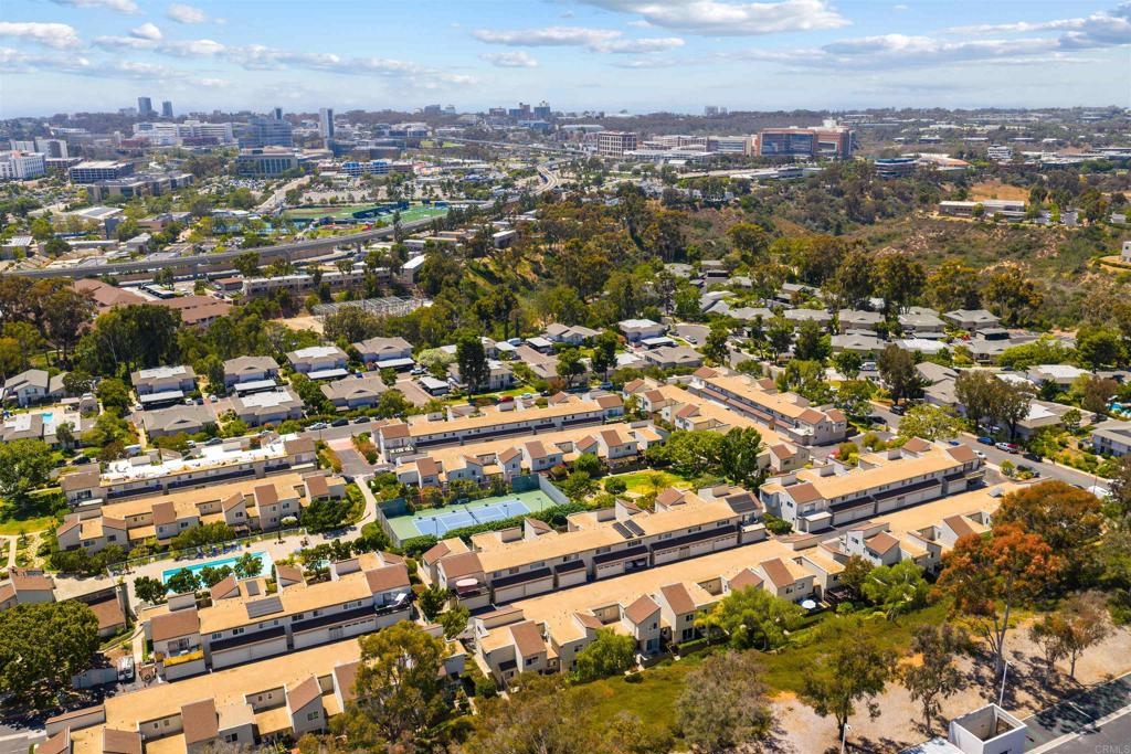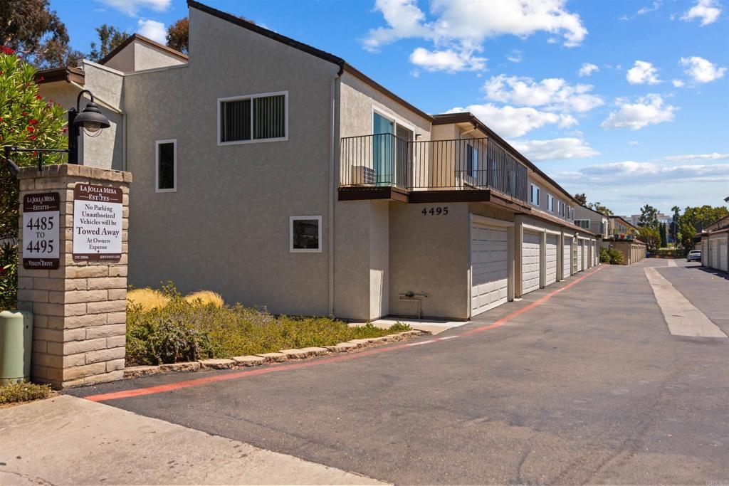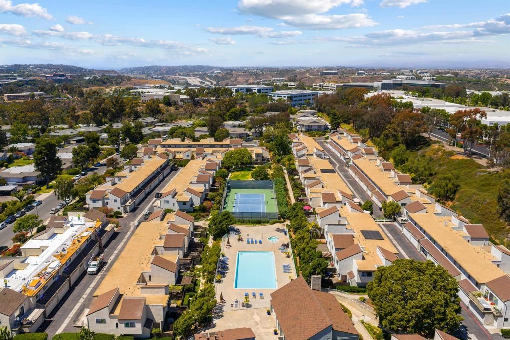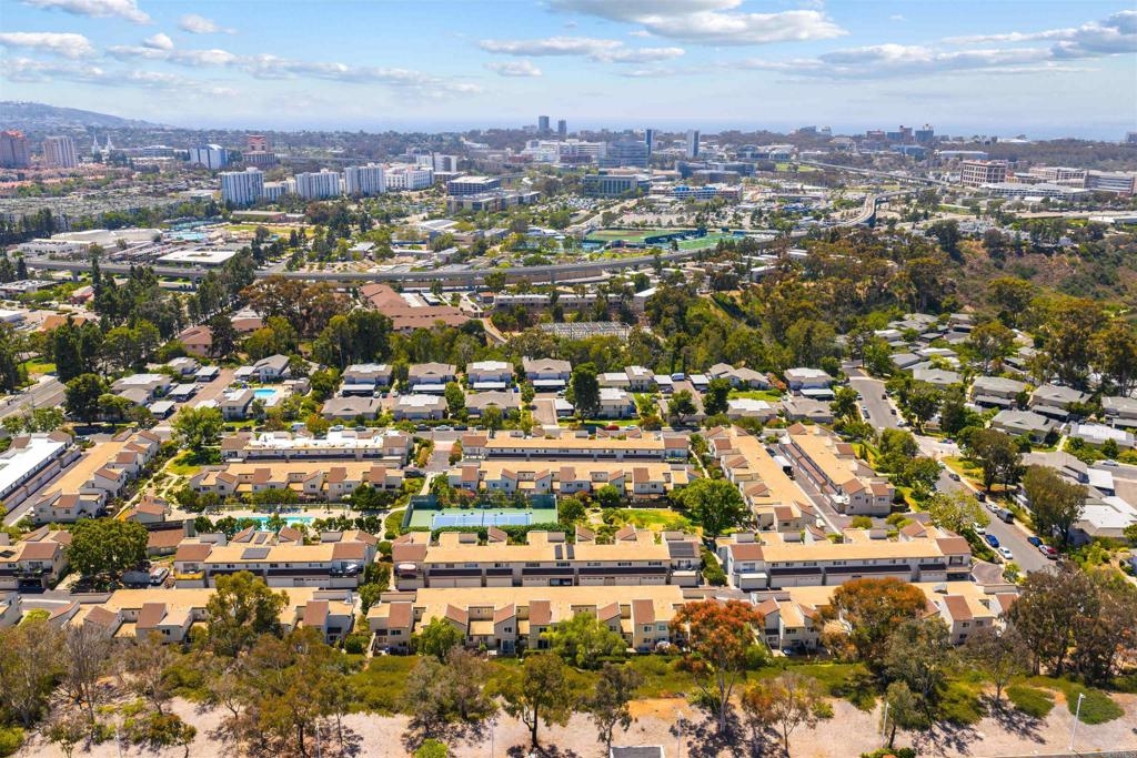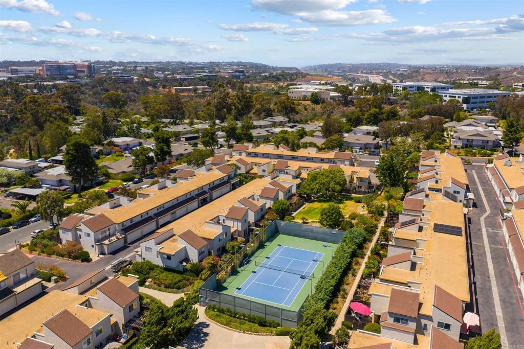 La Jolla Mesa Estates – rarely available in the heart of the Golden Triangle in UTC! This lovingly maintained and thoughtfully remodeled townhome offers privacy, comfort, and a rare combination of space and location. Tucked away in a quiet, easterly location with lush, tree-lined views, the home features a fully fenced, generously sized patio—perfect for outdoor dining or peaceful relaxation. Inside, the main level boasts an updated kitchen with modern finishes, a convenient half bathroom, and direct access to an oversized 2-car attached garage complete with built-in cabinetry. The spacious living and dining areas flow seamlessly to the large outdoor fully fenced patio, creating an ideal layout for entertaining. Upstairs, you’ll find two expansive primary suites with ensuite bathrooms—offering comfort and privacy for residents or guests. Additional upgrades throughout the home include dual-pane windows, beautifully crafted solid wood interior doors with rich grain and character, and a striking solid wood front door that adds charm and distinction. La Jolla Mesa Estates offers a lushly landscaped community with resort-style amenities including a pool, spa, tennis court, and a recreation room with a unique blend of tranquil living and urban conveniences at your fingertips. Ideally located near the World-class beaches of La Jolla, the famous Torrey Pines Golf Course, UCSD, the trolley and bus lines, hiking, biking, Scripps, UCSD & VA Hospitals, Westfield UTC Mall with premier shopping & dining, and with easy access to major freeways—this home delivers the perfect blend of lifestyle, convenience, and tranquility.