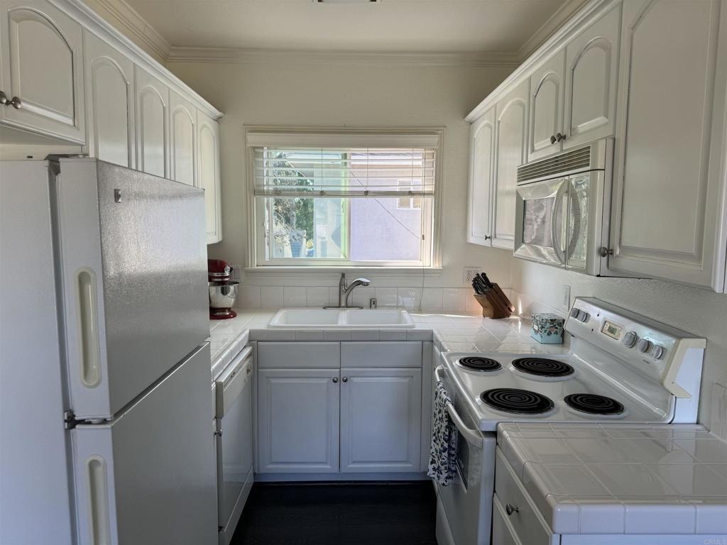 Price reduced - priced to move! This stylish unit in a swanky neighborhood is a must-see gem! Situated in a highly desirable area of Normal Heights, this remodeled 2-bedroom, 1-bathroom unit offers all the modern conveniences for comfortable living and entertaining. With its thoughtfully configured layout, this condo takes full advantage of an unobstructed cross breeze, providing a refreshing atmosphere. The unit features immaculate dark laminate floors and upgraded windows for enhanced energy efficiency and noise reduction. Additionally, it boasts a custom-built closet, as well as stylish architectural wall panels, crown molding, base molding and chair rails. With only one common wall and no unit below, privacy and tranquility are ensured. Within walking distance, you'll find iconic landmarks such as the Normal Heights and Kensington signs, as well as Ward Canyon Neighborhood Park, Adams Recreation Center, and an abundance of restaurants and bars. Additionally one covered parking space is provided, and the gated courtyard offers added security and convenience, with on site laundry and a complex storage room. Low Monthly HOAs. 3D Online Virtual Tour available. Don't miss out on this fantastic opportunity!