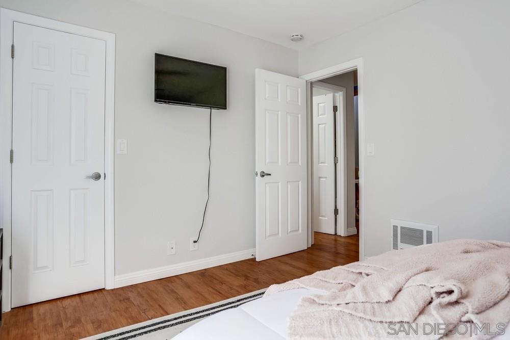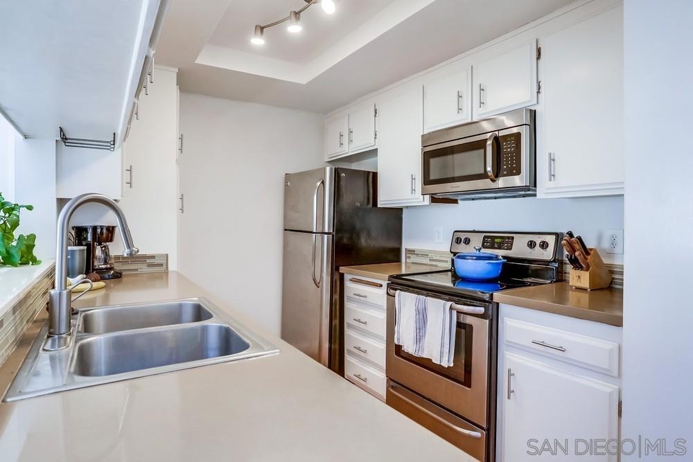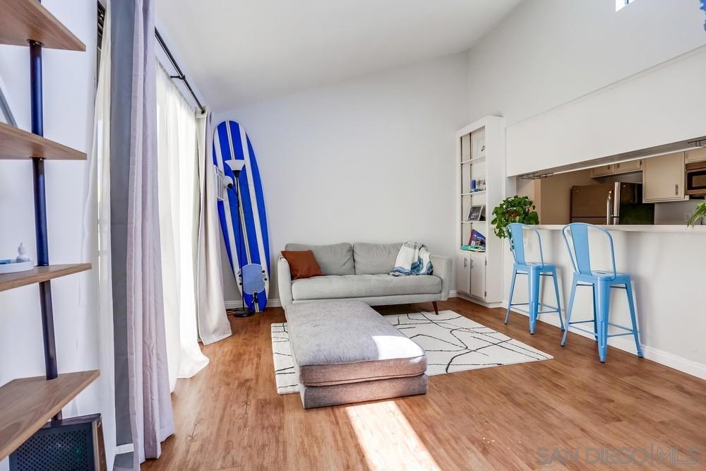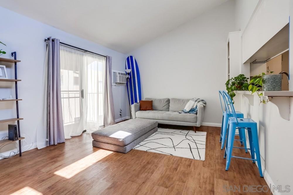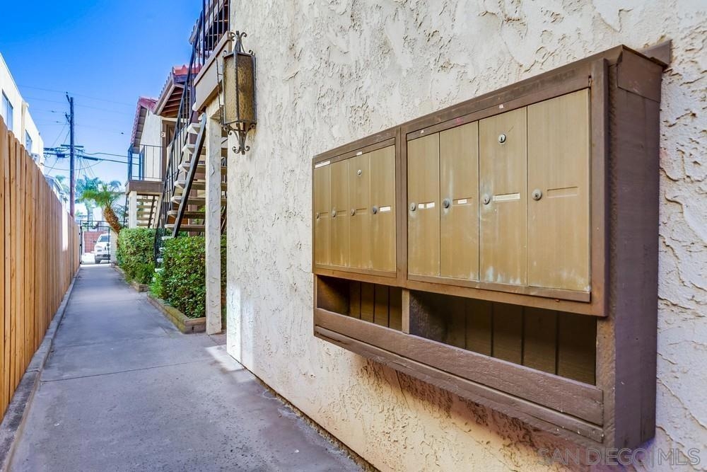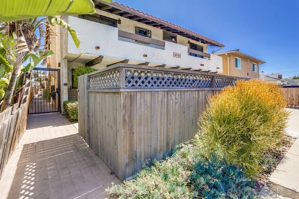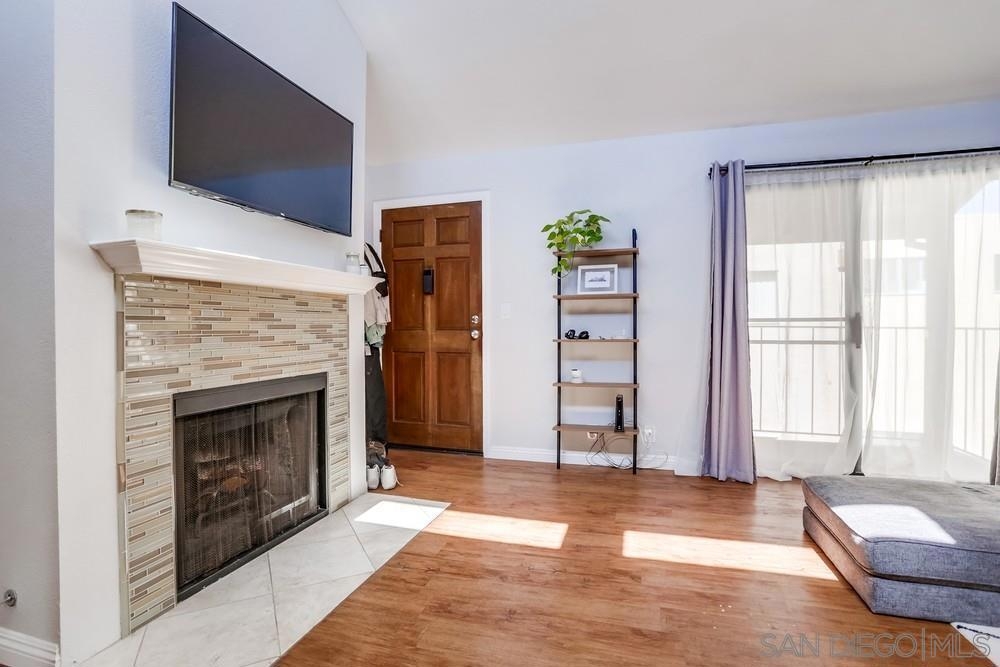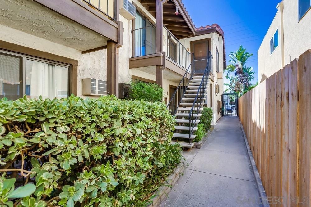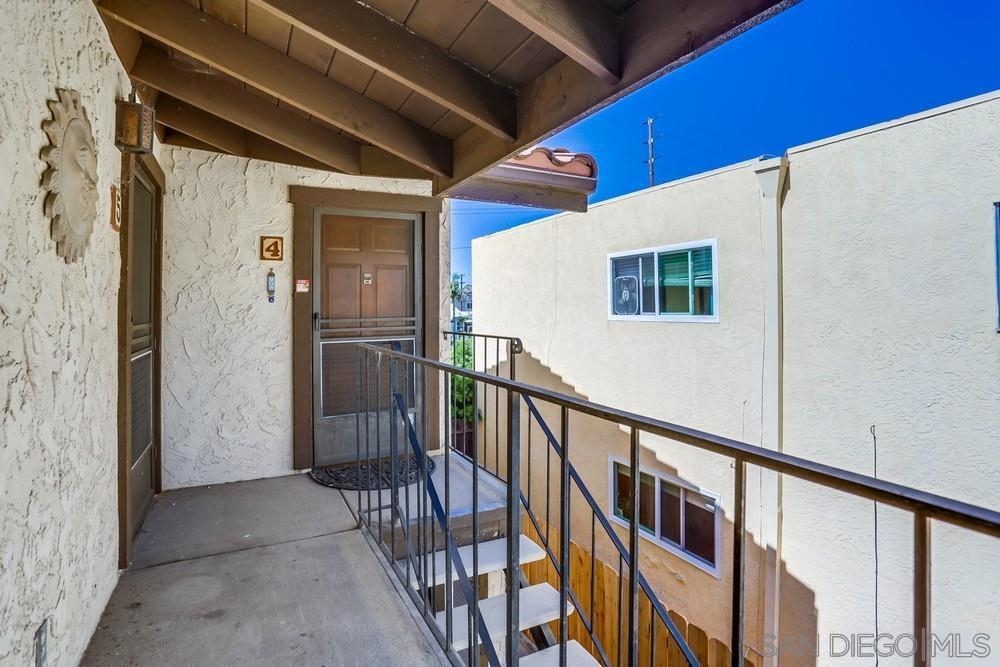 Light and bright 1 bed/ 1bath condo in Normal Heights. One of only seven units in this small & charming complex includes assigned parking spaces. Enjoy all the nightlife, restaurants, pubs and cafes that Normal Heights has to offer all within a short walk or bike ride! You enter the courtyard through a security gate before ascending the stairs to the condo's front patio porch. The living room is an ideal size featuring laminate wood flooring, cozy fireplace and mantle, and vaulted ceilings with high windows to let in lots of natural light. An additional sliding door provides access to the front patio. The living room is open to the kitchen and dining area. Kitchen has solid wood cabinets painted white with stainless steel appliances, quartz counters and a glass tile backsplash. The bathroom is bright with natural light from the installed skylight. The master bedroom is generously sized, has a large walk-in closet and a slider door letting in even more natural light with a Juliet balcony railing. Community facilities for laundry, waste disposal, and recycling are available.