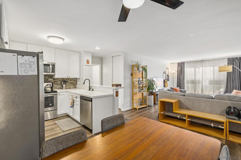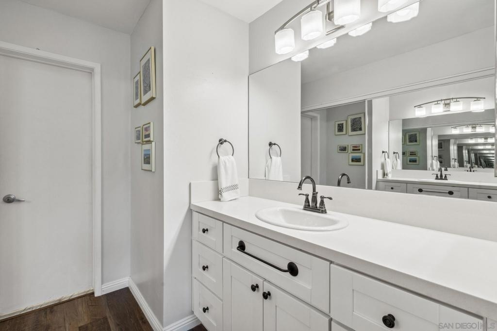 Introducing one of the sharpest offerings to be presented at The Plaza in quite some time. Coastal sophistication is the theme when you enter this stunning residence. Sleek, clean lines and elegance begin the story. Drenched in effusive light, you will feel immediately invigorated. Having undergone an extensive remodel, this home is the total package. Stunning flooring sets the stage throughout. An ideal floor plan of split bedrooms on either side creates an optimum setup for family, roommates or guests visiting. The rooms are spacious and the bedrooms feature excellent closet and storage space. One of the bedrooms even has a direct exterior door, which offers easy access to parking, the pool area, or tennis courts! The kitchen, dining and living rooms are an open concept great room experience and a private balcony. The kitchen has been completely remodeled with beautiful cabinetry, plenty of counter prep space and a suite of modern appliances. *See Supplement for Additional Details* The Plaza is a sprawling community with multiple buildings amid a collection of community facilities. This home is located in the building along the Lamont Street corridor, which makes it one of the easiest locations for guests to find when visiting The Plaza. The Plaza is a highly regarded coastal resort-style community, yet infused with an urban lifestyle. It’s within just a few minutes stroll, bike, skate or car to some of San Diego’s best beach playgrounds such as Pacific and Mission beaches and Sail Bay. You’re also a short distance to Kate Sessions Park and Bird Rock. You’ll truly be inspired to take advantage of every moment. The residential community offers endless amenities including multiple pools, spas, saunas, fitness center, club rooms, BBQs, movie room, library and tennis courts. The Plaza is located in the literal heart of Pacific beach. It is in close proximity to all types of pubs, cafes, entertainment, restaurants, grocery stores and transportation. The home comes with two secured parking spots, one in the garage adjacent to the unit and one in the west side parking garage.