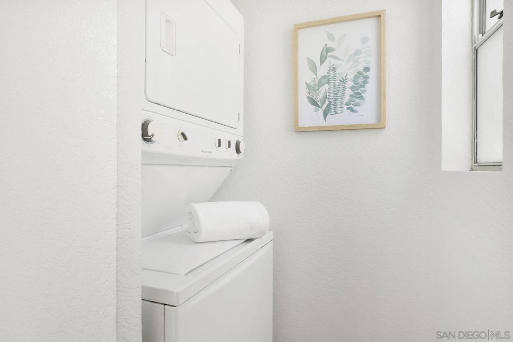 Presidio Park HOA is VA-approved with strong reserves and solid financials. This spacious, two-level townhouse-style condo sits in the heart of the vibrant College Area and Rolando Village. Freshly painted, 2-bedroom, 1.5-bath home offers 923 sq ft of comfortable living across two levels with a large patio! Features include modern LVP and tile flooring throughout and a cozy gas fireplace for relaxing evenings. Enjoy in-unit laundry, ceiling fans in each room, and an inviting, exclusive patio—perfect for morning coffee or entertaining guests. Upstairs, one bedroom opens onto a private balcony overlooking the park across the street, providing a peaceful retreat. Separated by a generous full bathroom is the spacious second bedroom, ideal for roommates or a small family. Includes 1 covered assigned parking space (#33) in gated garage; additional unassigned space available first-come with permit. Unit #118 also has one of the rare extra storage units (#3). Minutes from SDSU and freeway access. The area boasts excellent walkability (Walk Score 84), with dining options like Terra American Bistro, Woodstock’s Pizza, and diverse fare at Campus Plaza. Families will appreciate nearby Clay Elementary and the Ray & Joan Kroc Center. This home delivers both charm and convenience in one of San Diego’s most desirable communities. Don’t miss this opportunity in a sought-after Mid City location.