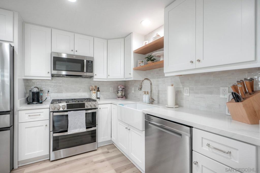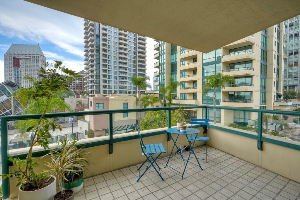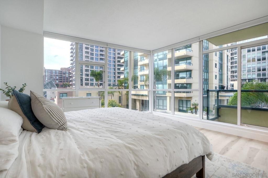 Reduced - Sky and city views greet you in this beautifully updated home located in the esteemed Horizons South Tower, with floor-to-ceiling windows and a quiet location overlooking courtyard waterfall with lush tropical landscaping. This corner home perfectly blends resort-style living with a vibrant Marina District location. The modern oasis begins when you enter the open floor plan accented by stunning light oak floors, with west-facing sunset views above the renowned architecture of the New Children’s Museum . The meticulously updated kitchen is thoughtfully designed with an oversized custom island and cabinetry, apron sink, high-end stainless-steel appliances including a 5-burner double oven gas range with Wi-Fi and True Convection, and refrigerator with beverage center and dual ice maker. Owner paid EV charger at deeded parking space conveys to buyer! The primary suite, which includes a large bathroom with soaking tub and second private balcony, overlooks the newly renovated community pool, spa, and BBQ area. The gorgeous high-end natural finishes and tasteful design continue the oasis ambience of Horizons throughout the home. The community centerpiece waterfall feature provides a relaxing acoustic backdrop, enhancing your home’s peaceful ambiance. Dual-paned windows, top down-bottom up shades, and a cozy living room fireplace ensure privacy and an intimate living experience, with access to all of the highly-sought after amenities at Horizons. Parking is a breeze for both you and your guests with an EverCharge EV charging station personally dedicated to your parking space, and underground gated parking for your guests. The fitness center, pool/spa and BBQ areas, Billiards room, community room, and elegantly updated lobbies provide plenty of activities and neighbor interactions. Conveniently located in the heart of Marina District, simply step outside into the San Diego Children’s Park to enjoy the year-round coveted weather. Professionally managed by FirstService Residential with 24-hour security and video surveillance, full-time concierge service, and even bicycle storage, you can enjoy your peaceful retreat supported by a community that prioritizes comfort, security, and care. Welcome home to Horizons 305 South