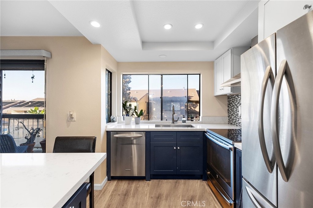Stunning Upgraded Single-Level, End Unit Condo in the Heart of San Diego – Perfect for Outdoor Lovers! Discover the ultimate in San Diego living with this beautifully remodeled single-level condo, blending modern elegance and effortless style. Recently upgraded in 2022, this home features cohesive finishes that flow seamlessly from room to room, creating a welcoming and sophisticated atmosphere. The kitchen is a true highlight, with tasteful custom cabinetry, sleek quartz countertops, recessed lighting and stainless steel appliances. Both full bathrooms are elegantly remodeled with chic subway and luxurious mosaic tiling, paired with porcelain tile flooring. The spacious master bedroom offers a large walk-in closet with custom built-ins and an adjoining private deck patio that provides a tranquil outdoor retreat, perfect for reading or morning coffee. The living area seamlessly opens up to an additional patio, extending your living space for al fresco dining or simply unwinding in the fresh air. For added convenience, this home comes equipped with an in-unit full-size washer & dryer, a brand new 6 month-old furnace and a garage that provides secure, private parking and additional storage. Nestled in a gated a community, this condo provides both privacy and peace of mind, with added security of controlled access. Residents also enjoy access to a community pool and spa! For the dog lover, there is an on site dog run too! For those who love an active lifestyle, this condo offers unparalleled access to San Diego’s incredible outdoor offerings. Whether you’re into water sports, hiking, or simply soaking up the outdoors, you'll be just minutes from some of the best beaches, trails, and scenic spots. San Diego’s vibrant culture, world-class dining, and entertainment are also at your doorstep, making this condo the perfect place to enjoy the best of Southern California living. Don't miss out on the opportunity to call this property home!