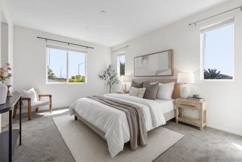 Welcome to this beautifully maintained, newly constructed tri-level home located in the highly sought-after resort-style community of Playa Del Sol. This premium corner unit offers 2 bedrooms and 2.5 bathrooms, thoughtfully designed to maximize both comfort and functionality. Flooded with natural light from multiple exposures, the home feels bright and inviting throughout. Enjoy your own private balcony—perfect for morning coffee or unwinding after a long day. The interior still shows like new, featuring fresh walls, clean flooring, and meticulously cared-for spaces from the kitchen to the bathrooms, reflecting true pride of ownership. The open-concept layout seamlessly connects living, dining, and kitchen areas, making it ideal for both everyday living and entertaining. Each level provides a sense of separation and privacy, enhancing the overall livability of the home. Situated in a vibrant and growing part of South San Diego, this property offers convenient access to multiple naval bases, making it an excellent option for military personnel or investors alike. Residents of Playa Del Sol also enjoy resort-style amenities, adding to the lifestyle appeal of this exceptional home. This is a rare opportunity to own a turnkey, corner-unit property in one of the South San Diego's most dynamic communities.