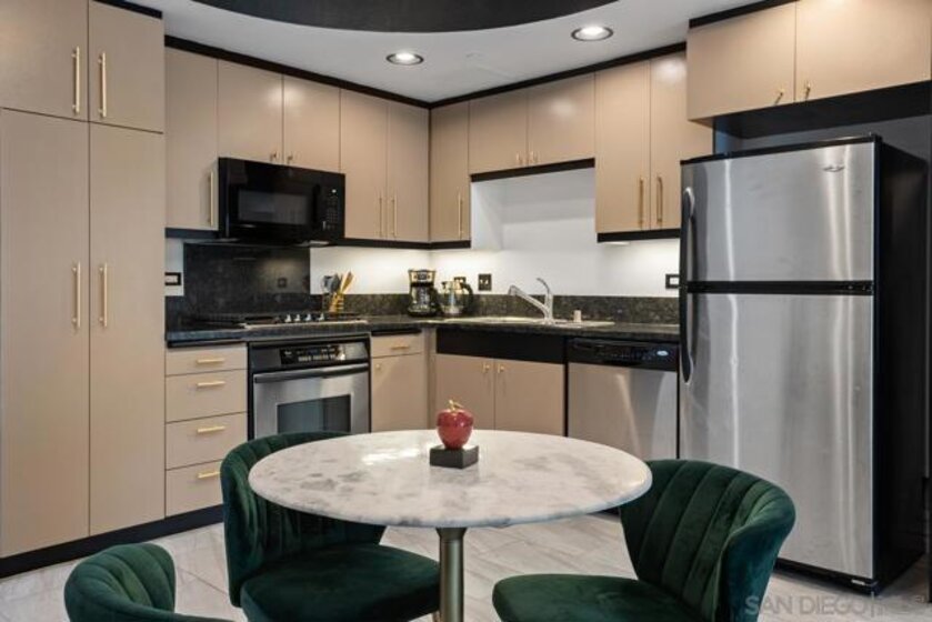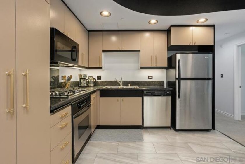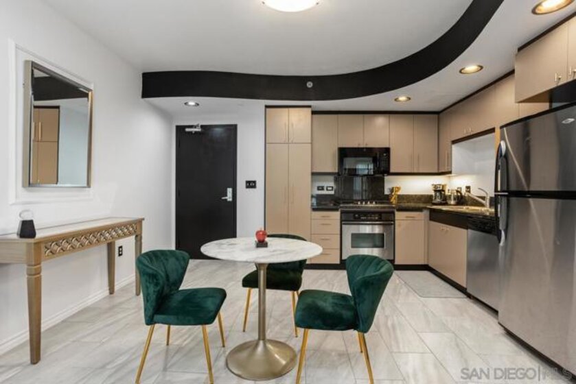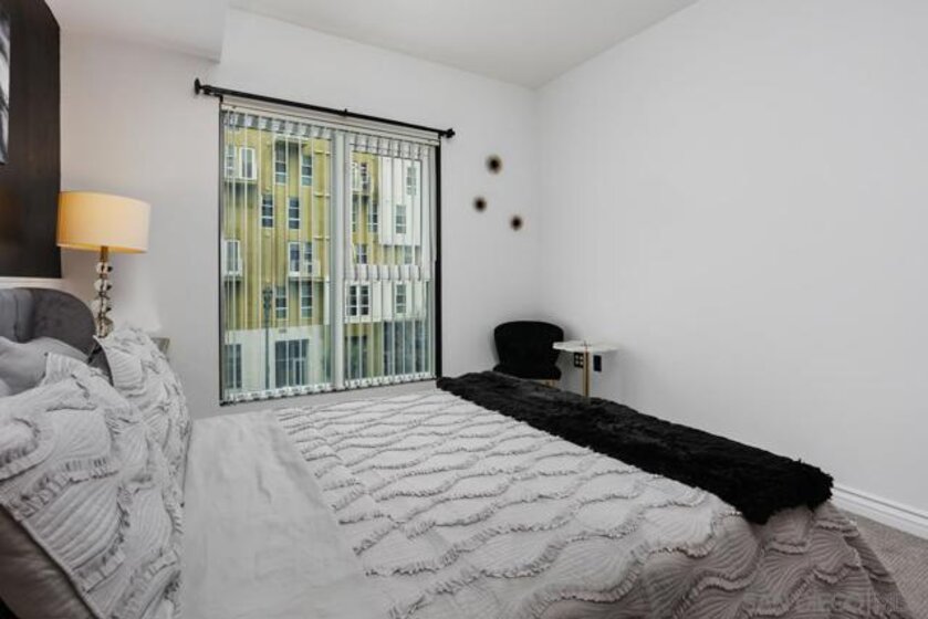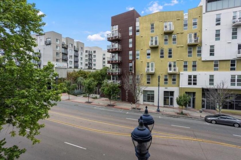 Enjoy downtown living in this spacious East Village condo with a private balcony and a bright, open layout. The home features tile flooring in the kitchen, marble tile in the bathroom, granite countertops, and refreshed cabinetry in both the kitchen and bath. A generously sized kitchen offers space for a dining table, while the living room and bedroom provide comfortable, well proportioned living areas. The building offers assigned underground gated parking, a fully equipped fitness center, and a welcoming courtyard with BBQ and seating. Conveniently located across the street from Albertsons and within walking distance to restaurants, cafes, breweries, and entertainment. Low HOA and a prime East Village location make this a great opportunity for downtown living.