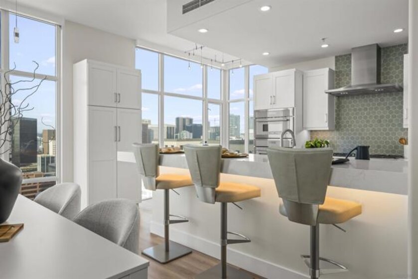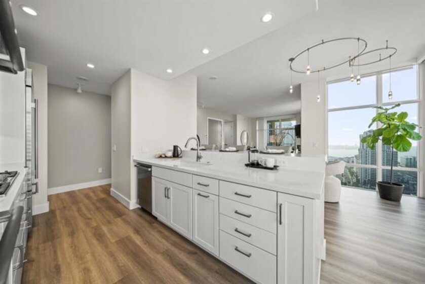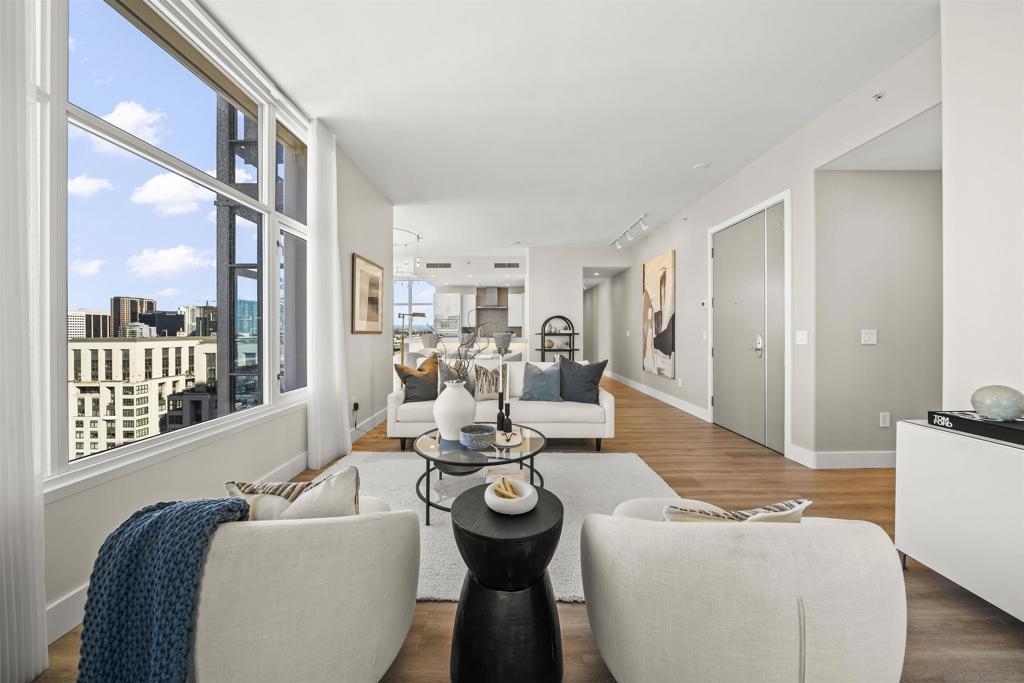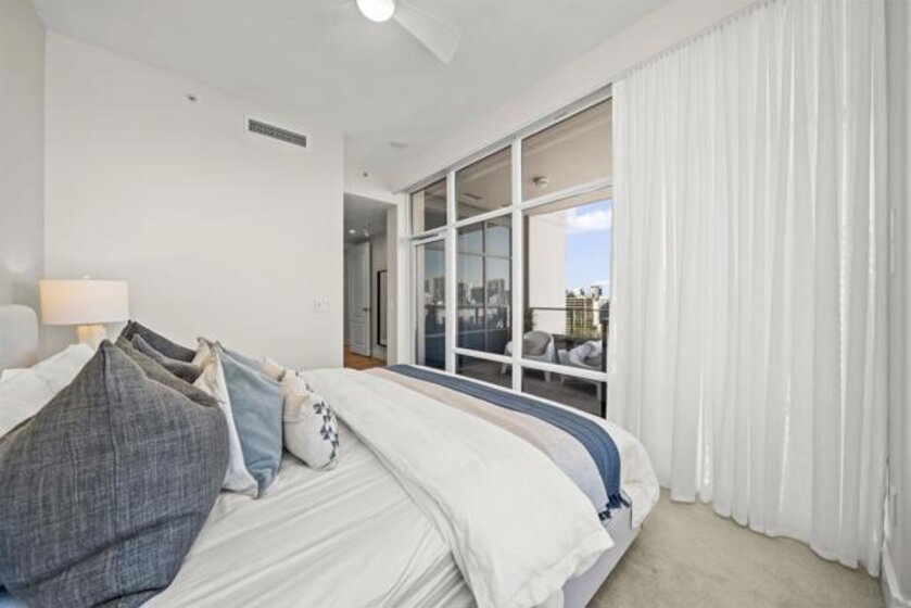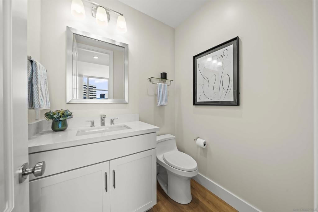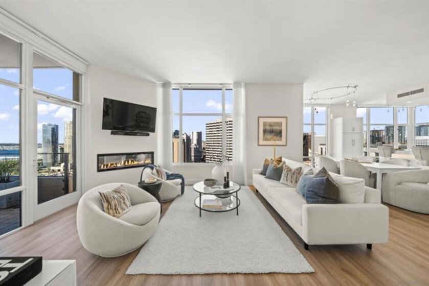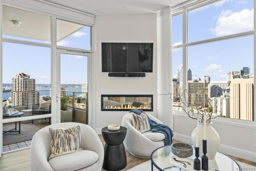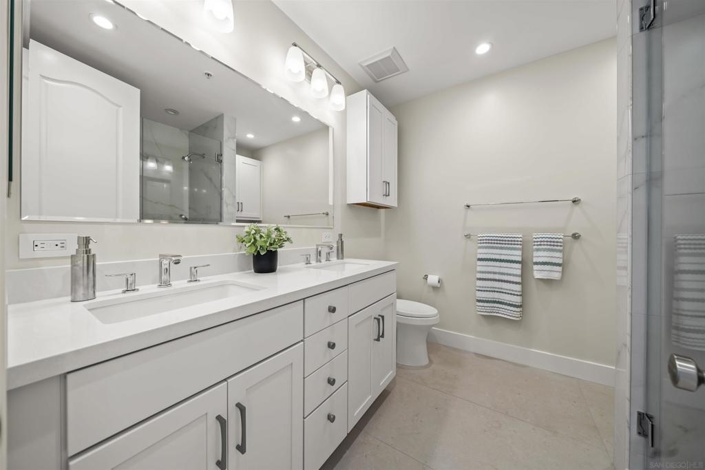 Step into luxury with this impeccably remodeled 2BR/2.5BA 23rd floor residence offering expansive West, North & East facing views! The grandeur of the space is accentuated by 10.5 ft ceilings + floor-to-ceiling windows, complemented by two private balconies perfect for soaking in San Diego's breathtaking sunsets, watching ships sail by, and admiring the views of Coronado Island and city lights. This residence has been recently remodeled with extensive upgrades including updated flooring throughout, modern kitchen cabinetry, Caesarstone countertops, state-of-the-art kitchen appliances + washer/dryer, California Closet built-ins, upgraded electrical + lighting, and more! Additionally, both bedrooms feature en-suite baths that have been fully remodeled, and there's a separate powder room for guests. Moments from Seaport Village, The Rady Shell, Gaslamp District and Petco Park, Pinnacle offers white-glove concierge service, a world-class gym, steam and sauna facilities, a guest suite, a stylish lounge, a 95 ft lap pool + spa & more. Residence #2303 also offers two underground parking spaces and a storage unit. This home epitomizes sophisticated urban living, with every detail thoughtfully considered and upgraded.