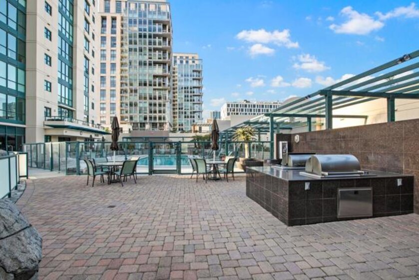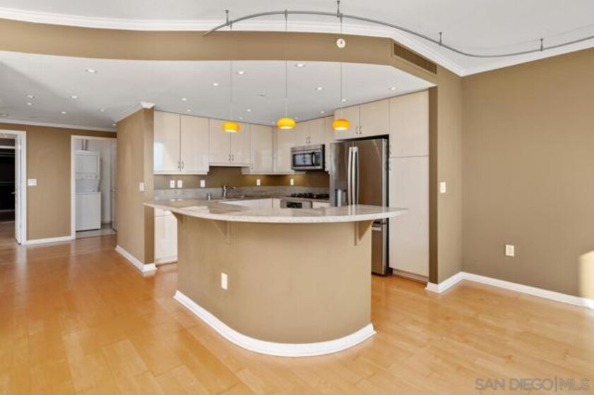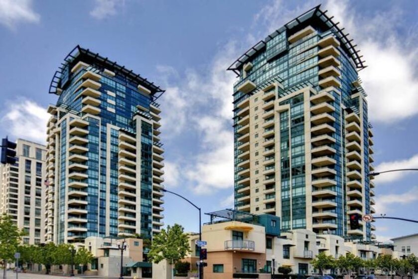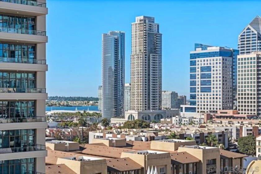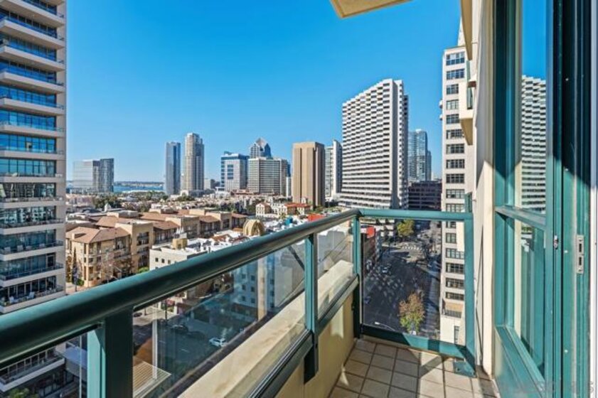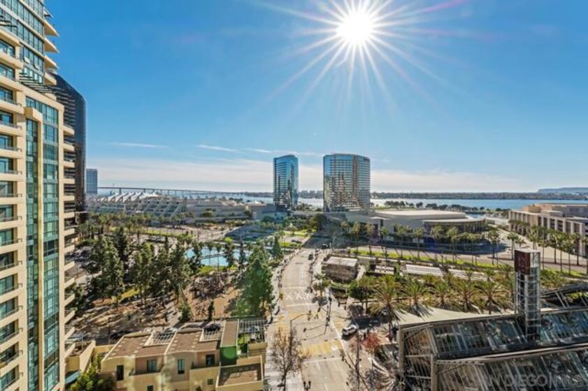 Enjoy elevated downtown living in one of San Diego’s most established full-service residential communities. Located on the 13th floor, this residence offers unobstructed south and west views, a comfortable sense of privacy, plenty of natural light and quiet separation from street-level activity—creating a calm retreat above the energy of the city. The layout is structured as open living with dining and kitchen areas working in unison to deliver a functional yet cozy experience. The kitchen comes equipped with state of the art appliances, designer cabinets and modern countertops. The additional den and generous patio complete the package. The main bedroom offers westerly views, a fully remodeled bathroom and an ample finished walk-in closet. The guest room provides privacy and comfort to anyone desiring to stay for a while. Two assigned parking spots (one with EV charging station) are deeded to the property. Life at Horizons is centered around convenience, wellness, and connection. Residents enjoy a resort-style second floor featuring a fully equipped fitness center with men’s and women’s locker rooms, billiards room, library, swimming pool, spa, and outdoor BBQ areas—perfect for relaxing or entertaining. Just off the lobby in the South Tower, a business center with conference table, computer, and printer provides a professional workspace, while a full kitchen entertainment room with large-screen television offers an inviting setting for gatherings and events. Additional conveniences include guest parking, bike storage area and a dedicated unit storage. Enjoy elevated downtown living in one of San Diego’s most established full-service residential communities. Located on the 13th floor, this residence offers unobstructed south and west views, a comfortable sense of privacy, plenty of natural light and quiet separation from street-level activity—creating a calm retreat above the energy of the city. The layout is structured as open living with dining and kitchen areas working in unison to deliver a functional yet cozy experience. The kitchen comes equipped with state of the art appliances, designer cabinets and modern countertops. The additional den and generous patio complete the package. The main bedroom offers westerly views, a fully remodeled bathroom and an ample finished walk-in closet. The guest room provides privacy and comfort to anyone desiring to stay for a while. Two assigned parking spots (one with EV charging station) are deeded to the property. Life at Horizons is centered around convenience, wellness, and connection. Residents enjoy a resort-style second floor featuring a fully equipped fitness center with men’s and women’s locker rooms, billiards room, library, swimming pool, spa, and outdoor BBQ areas—perfect for relaxing or entertaining. Just off the lobby in the South Tower, a business center with conference table, computer, and printer provides a professional workspace, while a full kitchen entertainment room with large-screen television offers an inviting setting for gatherings and events. Additional conveniences include guest parking, bike storage area and a dedicated unit storage, all within a professionally managed, secure building. With its central Downtown location close to dining, waterfront attractions, and everyday essentials, Horizons delivers an effortless urban lifestyle where comfort and amenities come together seamlessly. Residence 1304 invites you to experience high-floor living designed for how people truly live, work, and unwind.