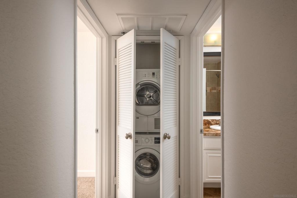 Experience resort-style living in the heart of Fashion Valley at Presidio Place. This top-floor condo is filled with natural light and features vaulted ceilings, an open and airy floor plan, and a private balcony overlooking the pool. The spacious living area is ideal for both everyday living and entertaining, while the oversized primary suite offers a peaceful retreat with an ensuite bath and dual sink vanity. Enjoy the convenience of in-unit full-size stacked laundry and thoughtful separation of space throughout the home. Presidio Place is known for its lush, park-like grounds with walking trails, a large lagoon, tennis and pickleball courts, and a pool and spa—creating a true oasis just minutes from shopping, dining, beaches, and freeway access. This is low-maintenance living with a resort feel in one of San Diego’s most central locations.