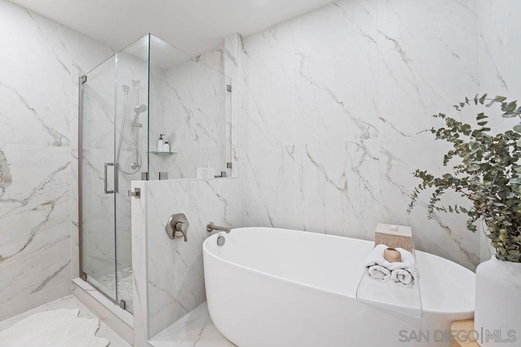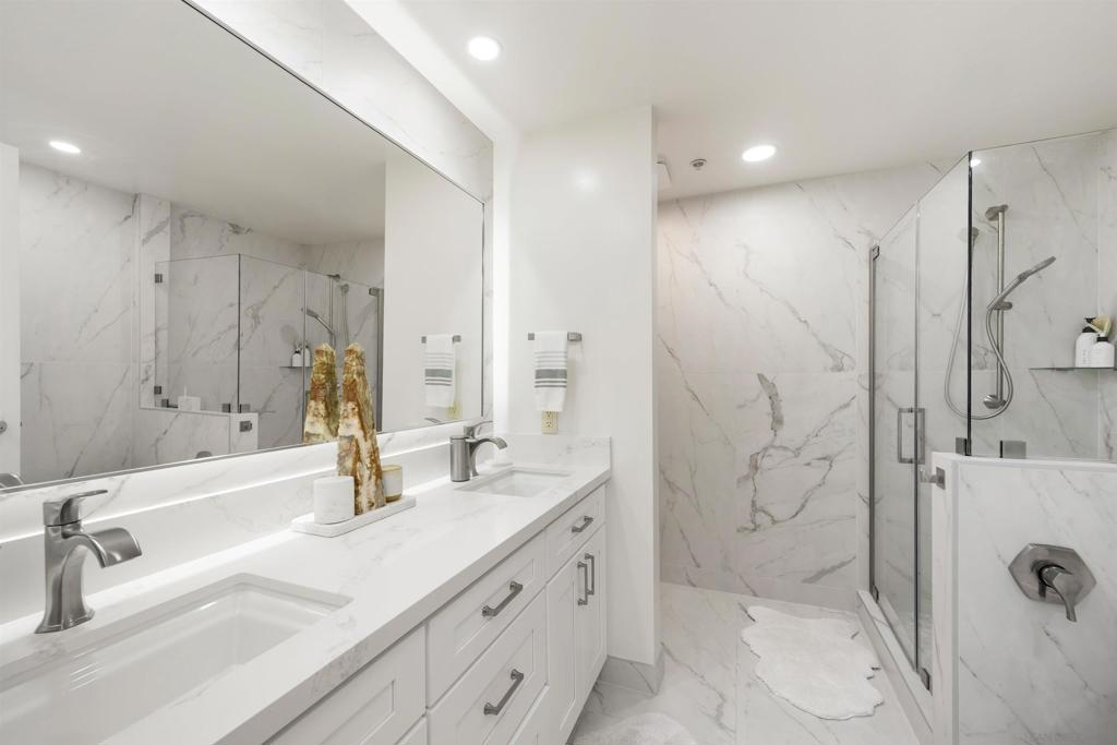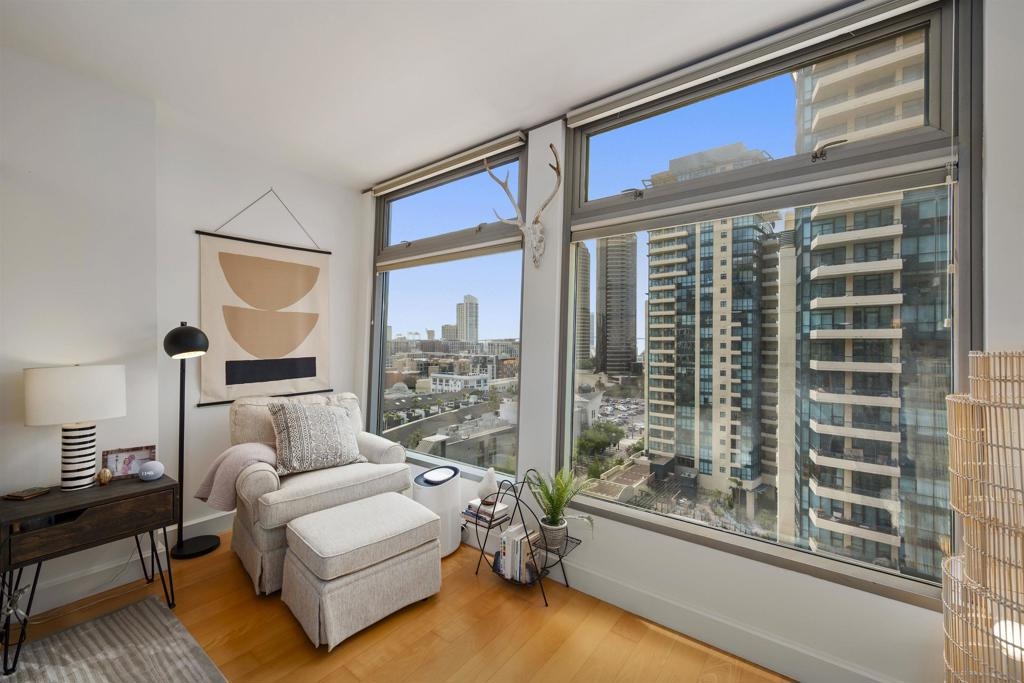 Experience elevated urban luxury in the heart of Downtown San Diego’s prestigious Marina District. This impeccably remodeled 3-bedroom, 3-bath residence is a rare find in the South Tower of Renaissance. Perched on the 12th floor, the home offers water views and abundant natural light through floor-to-ceiling windows, creating a seamless connection between vibrant city living and refined comfort. Completely reimagined kitchen, with rare natural granite, a Bosch paneled dishwasher, Sub-Zero paneled refrigerator, Hestan professional power range, and a custom bar area with Perlick double-drawer fridge and wine fridge. Additional highlights include maple hardwood floors throughout, a Samsung Frame TV with surround sound, and maple LVP flooring on the exterior deck. The Primary Suite impresses with a fully renovated spa-inspired bath featuring a freestanding tub, expanded walk-in shower, new cabinetry, and designer fixtures. The Junior Suite and third bath have also been transformed with custom showers in place of tubs, stylish new vanities, premium fixtures, and striking 24x48 porcelain slab tile. Practical luxury completes the home with two prime parking spaces (one extra-wide, one wide both with easy access) and a large storage locker with bonus storage, possibly the largest in the building. A Statement of Luxury in the Marina District. Perched high on the 12th floor of Renaissance’s coveted South Tower, this rare 3-bedroom, 3-bath masterpiece sets a new standard for downtown living. Walls of glass frame sweeping water views, flooding the home with natural light and blurring the line between cosmopolitan energy and private retreat. Completely reimagined kitchen with expanded counters draped in rare natural granite, a Bosch paneled dishwasher, Sub-Zero paneled refrigerator, and a Hestan professional power range. A custom bar with Perlick double-drawer fridge and wine fridge elevates every gathering. Maple hardwood floors lead you through spacious living areas designed for both entertaining and everyday elegance, enhanced by a Samsung Frame TV with surround sound and an exterior deck finished in maple LVP flooring. The Primary Suite is a spa-like sanctuary, boasting a freestanding soaking tub, expanded shower, custom cabinetry, and designer fixtures. The Junior Suite and third bath echo the same level of sophistication with sleek custom showers, new vanities, premium fixtures, and dramatic 24x48 porcelain slab tile. Every detail speaks of convenience and exclusivity: two prime parking spaces (one extra-wide, one wide—both with easy access) and a massive storage locker with bonus space, unmatched in the building. This is more than a home, it’s a statement!