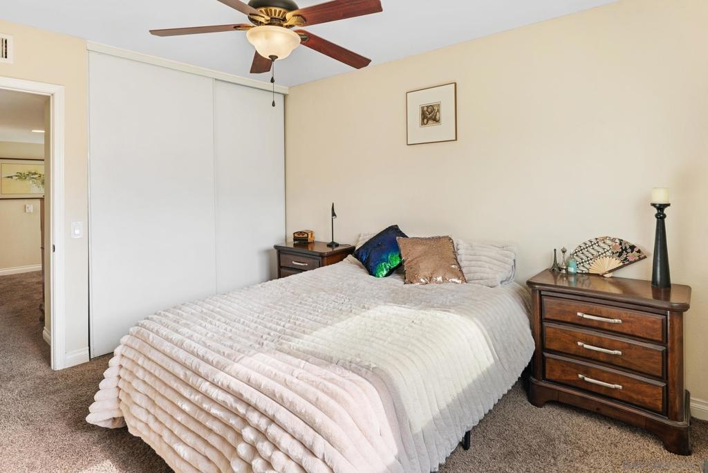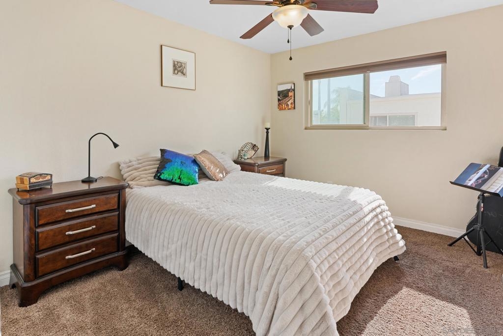 Highly coveted end-unit in Vista Del Cerro! Spacious living room with soaring ceilings, gas fireplace, and access to a private patio. Gourmet kitchen with granite counters, stainless steel appliances including an electrolux double oven, and breakfast bar. Upstairs features a primary suite with tall ceilings, ample closets, and a private balcony, plus two additional bedrooms. New floors and dual pane windows. Gated front patio and attached two-car garage with Charger outlet. Community offers park-like grounds, pool, and clubhouse. Walk to highly rated Dailard Elementary and Patrick Henry High School. A true must-see!
