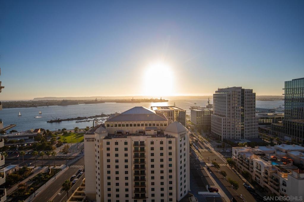 Perched on the 21st floor of Park Place, this custom-configured residence—originally a 2-bedroom plus den—offers panoramic 270-degree views of the bay and city skyline, along with two private balconies ideal for entertaining. This home offers some of the most expansive views you can find in Downtown San Diego under $2m. Located in the Marina District near Seaport Village and the waterfront RaDD innovation campus, Park Place offers resort-style amenities including 24-hour lobby staff, a pool, gym, sauna, and more—perfect for those seeking upscale urban living with unmatched walkability. Location & Community Welcome to Park Place, ideally located in the highly desirable Marina District of Downtown San Diego. Just outside your front door, you'll find the San Diego Bay, Seaport Village, and The Headquarters—all offering a dynamic mix of waterfront dining, boutique shopping, and outdoor entertainment. The surrounding area is buzzing with momentum thanks to transformative projects like IQHQ’s RaDD (Research and Development District), which is bringing millions of square feet of life science and office space along the waterfront. Residents enjoy easy access to the Gaslamp Quarter, Petco Park, and Little Italy, making this one of the most walkable and convenient neighborhoods in the city. Built in 2004 by Bosa Development, Park Place is a 30-story luxury community that blends contemporary design with a warm, welcoming atmosphere. Upon entering the building, residents are greeted by an elegant lobby featuring a grand piano and staffed by a 24-hour front desk team. Amenities include a resort-style pool and spa, a fully equipped gym, sauna and steam room, a residents’ lounge, and secure underground parking for both residents and guests. Residence Features Located on the 21st floor, this uniquely customized home offers sweeping 270-degree views of both the city and the bay. The open layout has been thoughtfully reimagined for entertaining, with dual balconies—one overlooking the bay and the other showcasing the glittering city skyline. The kitchen flows effortlessly into the living and dining areas, while the adjacent den features a built-in wine fridge and custom storage, making it ideal as a home office or lounge. The second bedroom has been transformed into a flexible seating area or secondary living space off the primary suite, allowing for stunning views from nearly every angle. The primary bedroom includes a generous walk-in closet and a beautifully upgraded ensuite bath with premium finishes. With walls of windows framing sunrise to sunset views, this residence is a standout opportunity for those seeking style, function, and location in one of Downtown’s most prestigious communities.