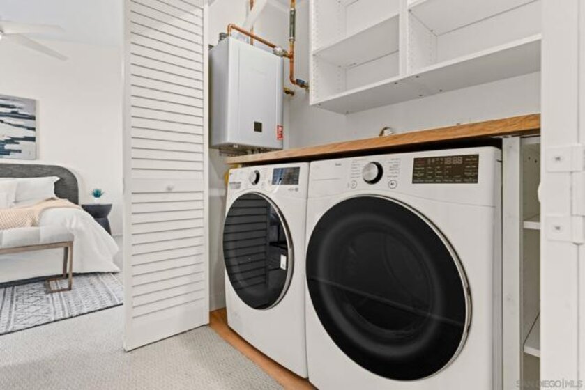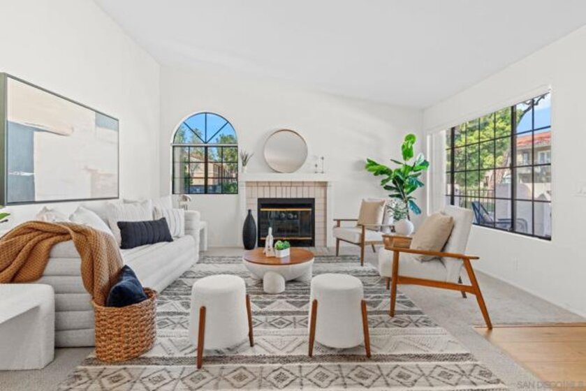 Rarely available "Carriage-Style" end-unit in the highly sought-after Marbella community of La Jolla Colony! This unique home offers the ultimate in privacy and quiet with no neighbors above or below. Step inside to an expansive, light-filled open floor plan featuring vaulted ceilings and large windows that only an end-unit can provide. The single-level living space flows seamlessly to a private balcony, perfect for morning coffee or evening breezes. The primary suite is a peaceful retreat, while the secondary bedroom is ideal for guests or a home office. Marbella Unit 104 | Privacy & Layout: Rare end-unit with no neighbors above or below. This "Carriage-Style" floor plan offers the quiet and privacy of a detached home with soaring vaulted ceilings and abundant natural light. Rare 2-Car Garage: Includes an attached, side-by-side 2-car garage with direct interior access—a premium feature for La Jolla Colony. Top-Tier Schools: Located in the prestigious University City cluster: Doyle Elementary (Walking Distance) Standley Middle * UC High HOA Value ($605 Total): Professional management by Moonstone Management & Consulting. Monthly dues cover Water, Trash, Exterior Maintenance (including Roof), Sewer, Gated Security, and access to the resort-style pool/spa and La Jolla Colony trails. Location: Walkable to Vons, Starbucks, and Doyle Park. Minutes to UCSD, Westfield UTC, and La Jolla beaches.