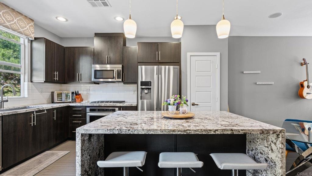 Located in the highly desirable Civita community in Mission Valley, this property offers access to true resort-style amenities including a state-of-the-art community center, multiple pools including an Olympic lap pool, fitness center, parks, playgrounds, sports courts, walking trails, clubhouse, barbecue areas, and event spaces. Built in 2014, this residence features a functional three-story layout with a bedroom on the first level along with a bathroom, ideal for guests or a home office, along with wood flooring, abundant natural light, and a seamless flow from the living room through the kitchen to a private balcony with canyon views. The kitchen includes granite countertops, a waterfall island, stainless steel appliances, recessed lighting, and pendant lighting over the island. Additional features include a bathroom on every level, upgraded fixtures throughout, a storage closet, and a two-car attached garage. Upstairs includes the primary and secondary bedrooms with a convenient laundry area on the same level, while a chair lift between the second and third floors adds accessibility. Centrally located with easy access to restaurants, shopping, and local farmers markets, this home offers one of the most convenient lifestyles in all of San Diego.