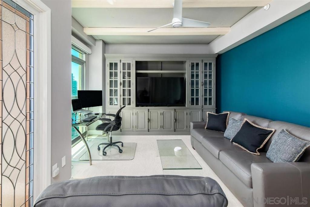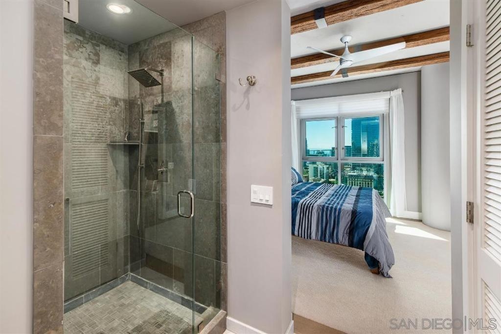 Enjoy luxury living at its finest atop Cortez Hill. Absolutely stunning condo w/Panoramic views of bay, bridge, city, & mountains from every room! Expansive open concept, 10ft beam ceilings & floor to ceiling windows w/ custom electronic shades. Professionally decorated & completely remodeled to perfection w/high end finishes. Chefs dream kitchen complete with Thermador appliances, wine fridge, copper trough sink & marble countertops. Custom designed his & hers luxury closets, wood floors & custom lighting. Chandelier in living room & 2nd bedroom/office wall system, both from Restoration Hardware will convey. Assigned storage unit & parking space. Steps to restaurants, Balboa Park, Little Italy, Bankers Hill, Hillcrest & 10 minutes to the airport. *PARKING SPACE IS ON P2 SPACE #27 *STORAGE SPACE IS ON P3, STORAGE ROOM 10, ROOM 3 NEXT TO PARKING SPACE 40.